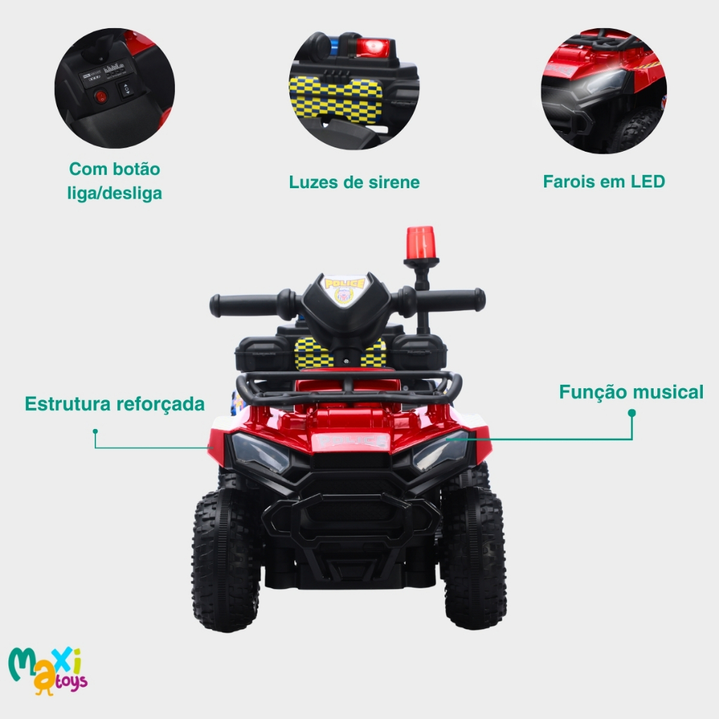Carro Elétrico Infantil Policial 6v Frente/Ré Maxi Toys(BIVOLT)