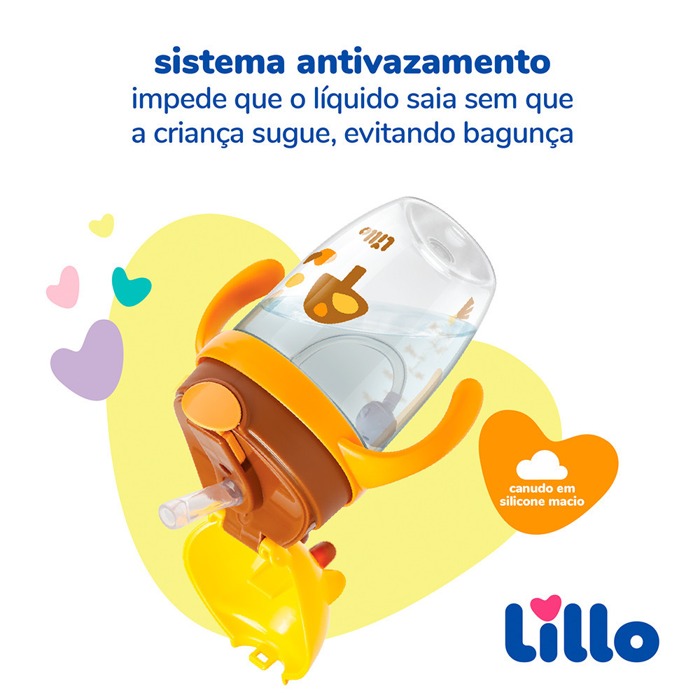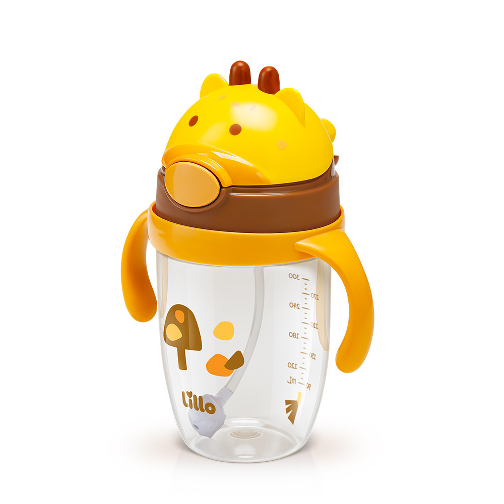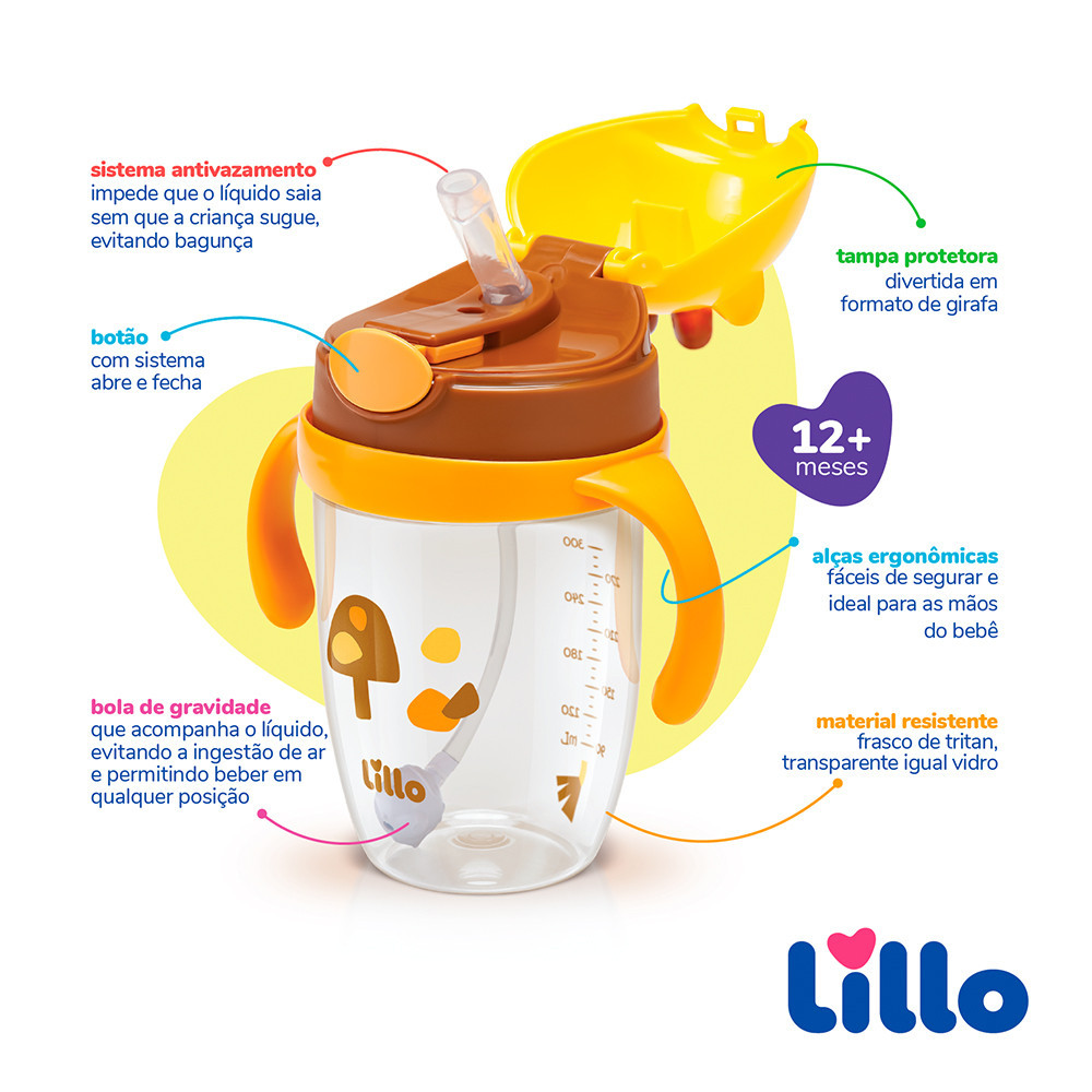 Copo Infantil Tritan com Alça e Canudo Girafa 300ml - Lillo
