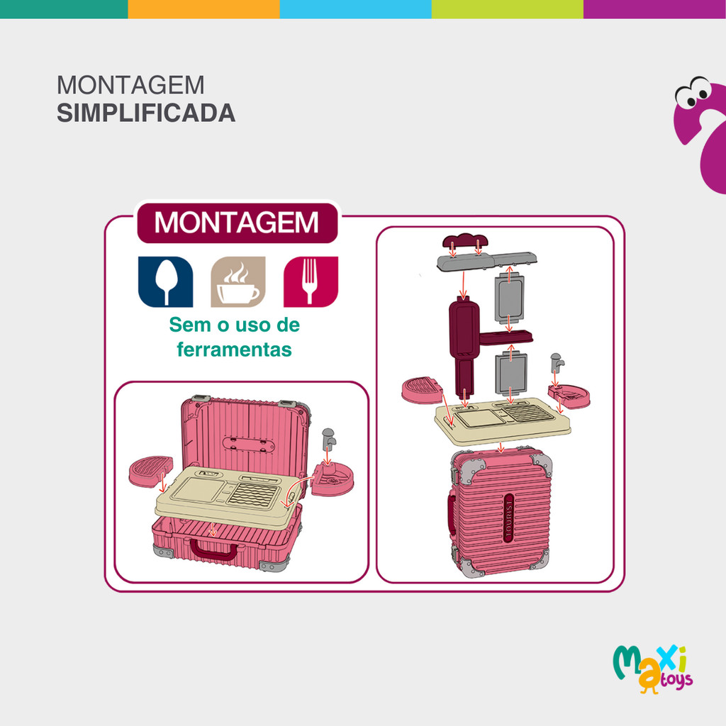 Cozinha Infantil Bancada 3 em 1 Maleta C/31 Peças Maxi Toys