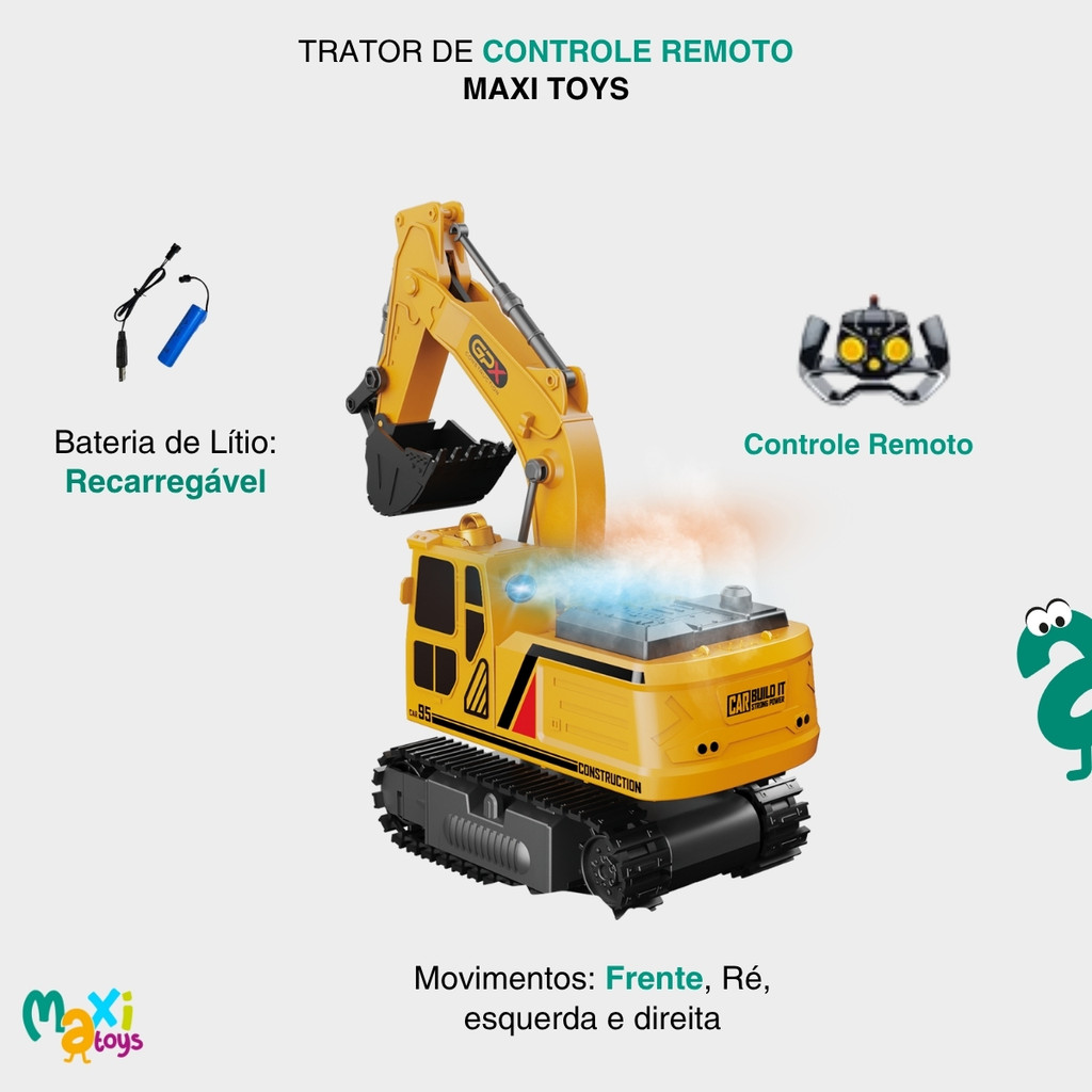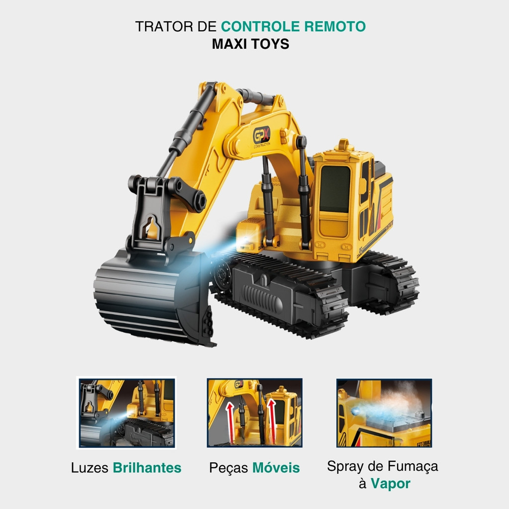 Carrinho de Controle Remoto TratorCar Solta Fumaça Maxi Toys
