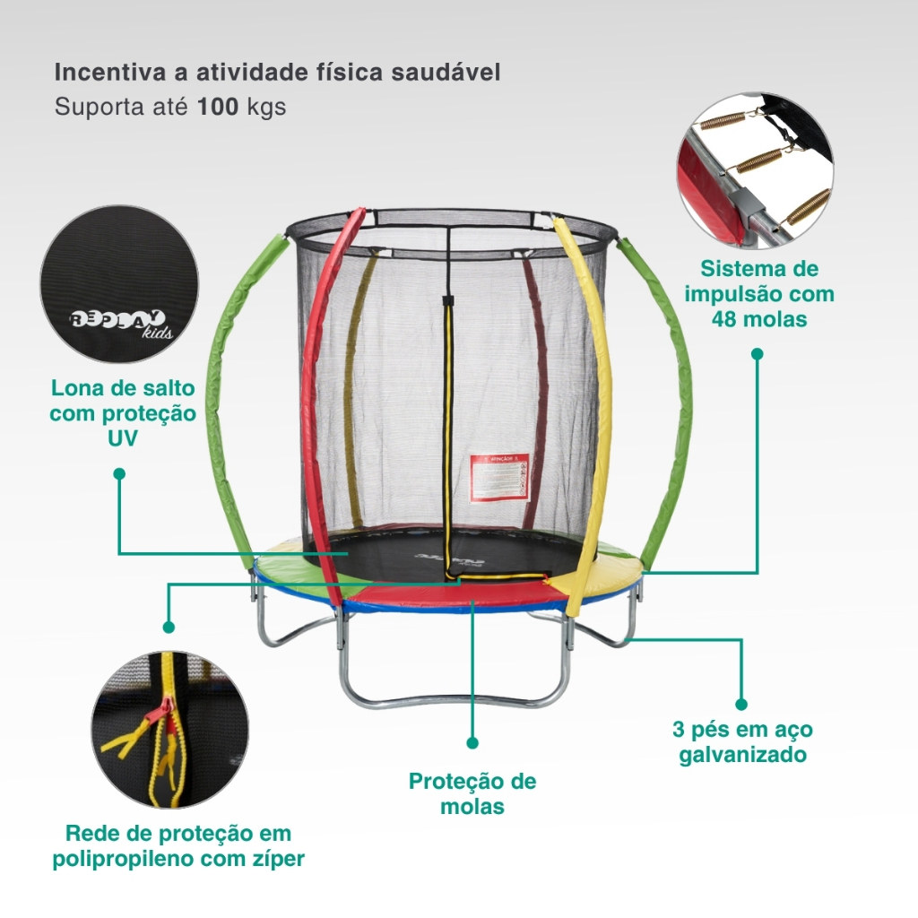 Cama Elástica Pula Pula Trampolim 2,44M Com Rede Replay Kids