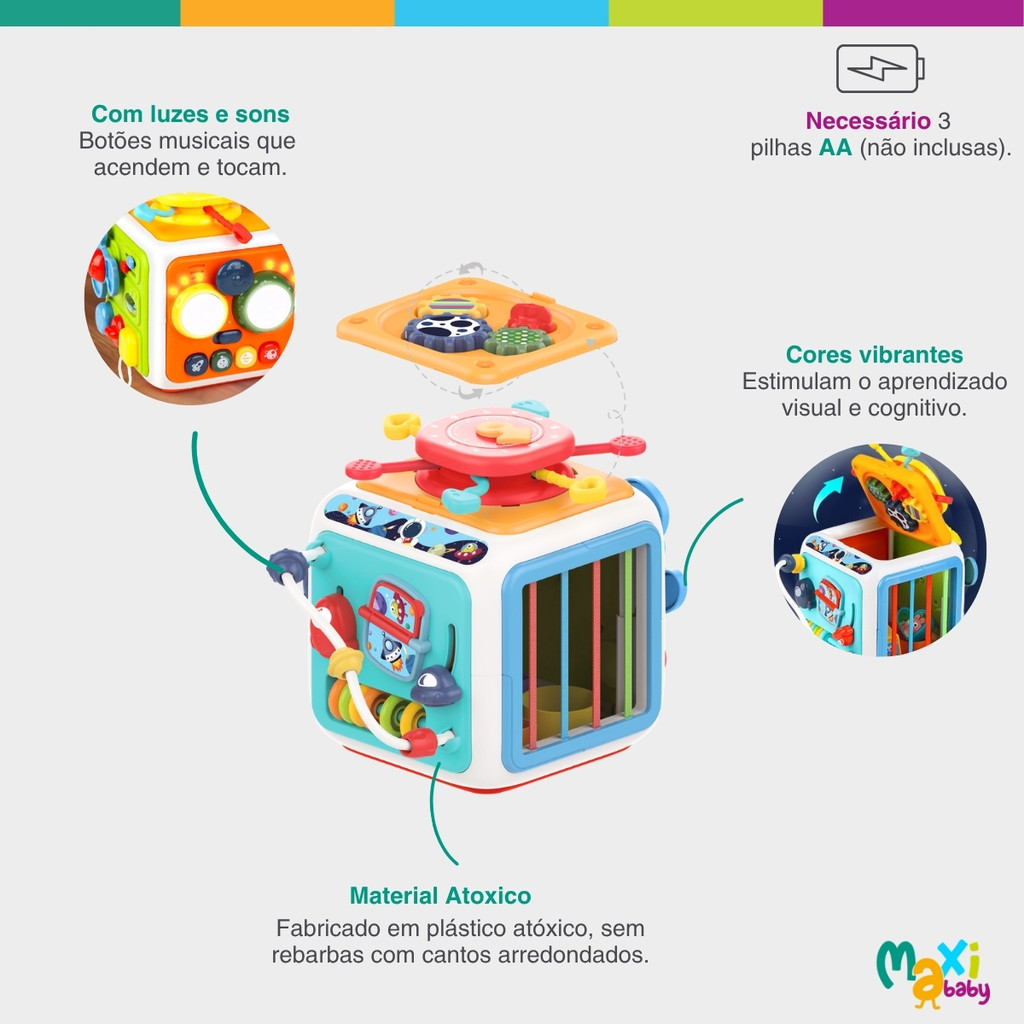 Cubo Educativo Brinquedo Infantil Som e Luzes Tiko Maxi Baby
