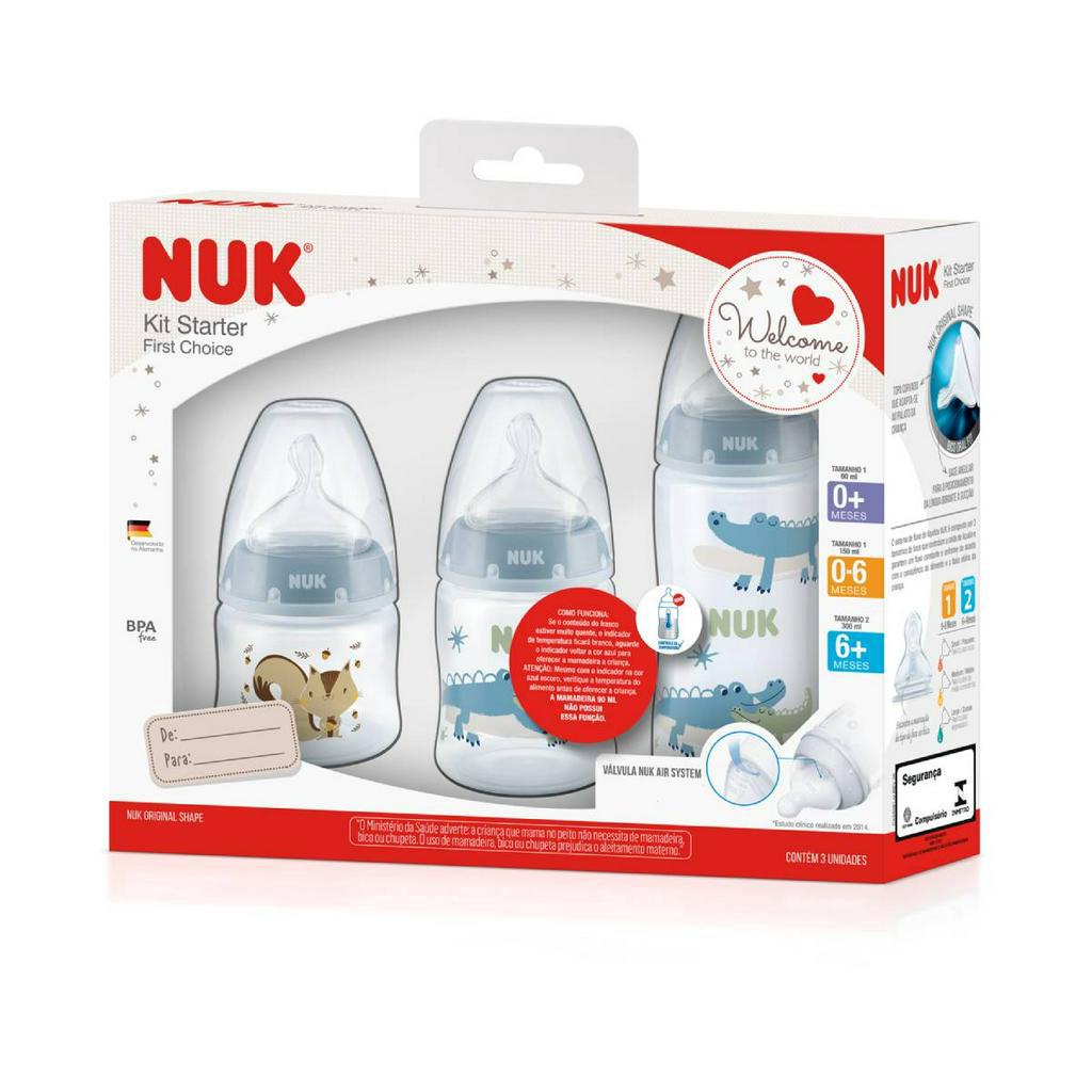 Kit 3 Mamadeiras Starter Azul 90/150/300ml First Choice NUK