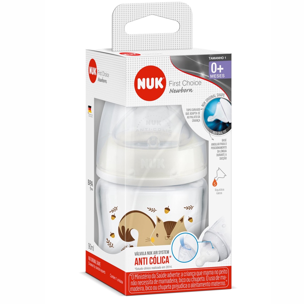 Mamadeira Recém Nascidos First Choice Esquilo 90ml - Nuk