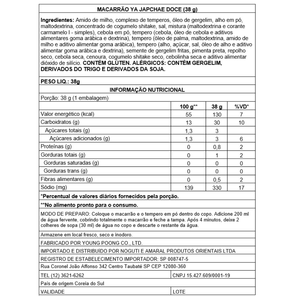 Japchae Coreano Macarrão de Batata Doce Glass Noodles Sabor Sweet - Copo - 38 gramas
