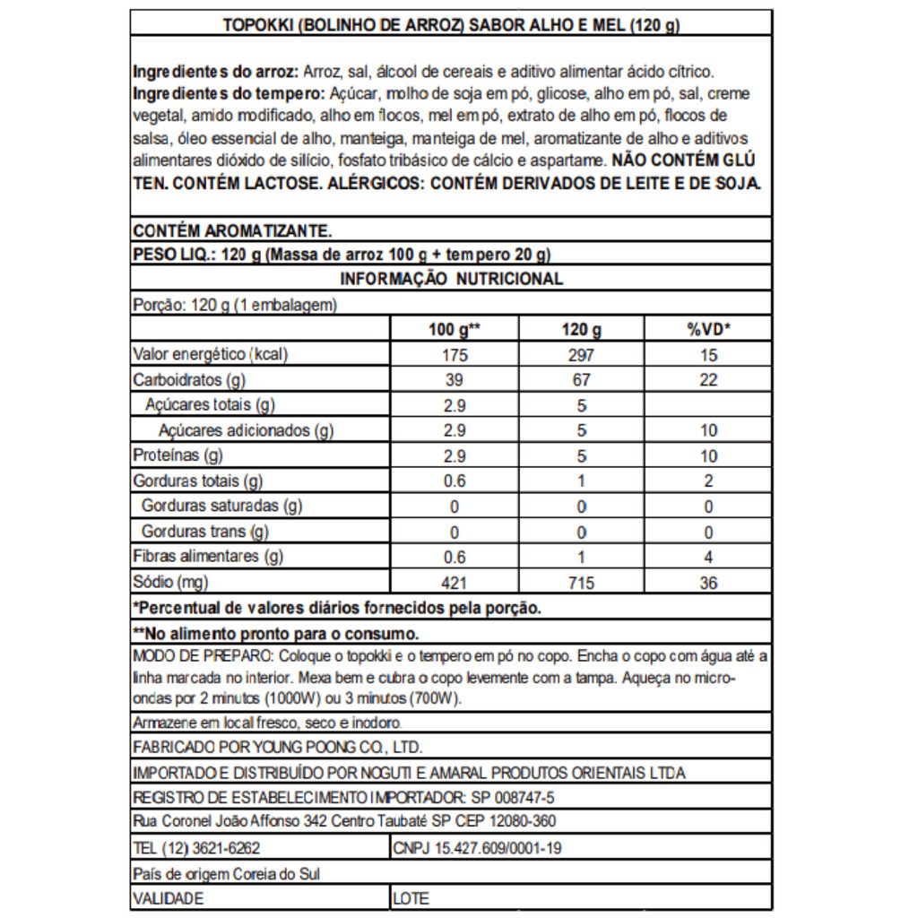 Topokki Bolinho de Arroz Coreano Instantâneo sabor Alho e Mel Pink Rocket Copo - 120 gramas