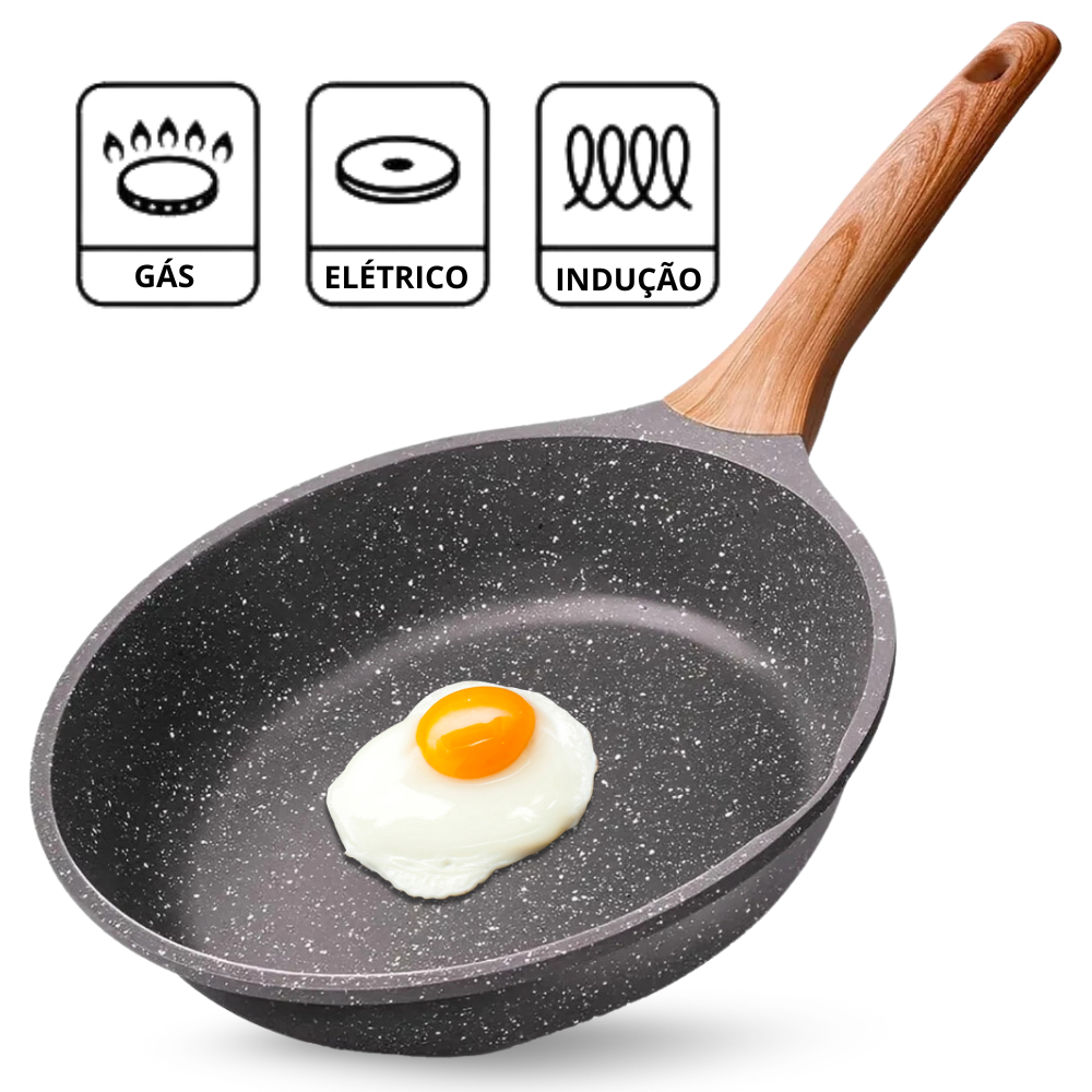 Frigideira Antiaderente Cerâmica Fundo Triplo Premium Indução Cabo Silicone Não Queima Não Usa Óleo