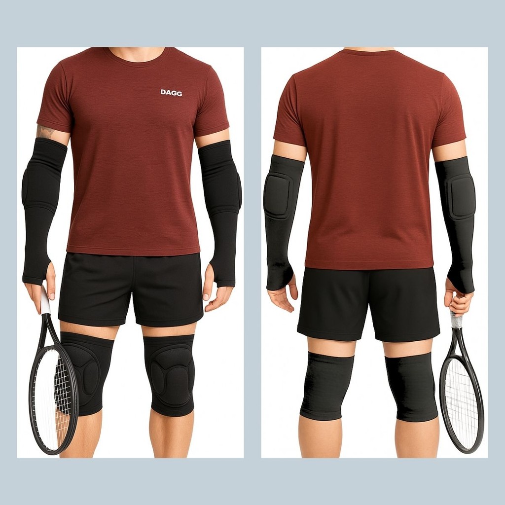 Conjunto Volei Joelheira Cotoveleira Manguito Proteção UV50+ Manga Longa Anti Impacto Esportivo