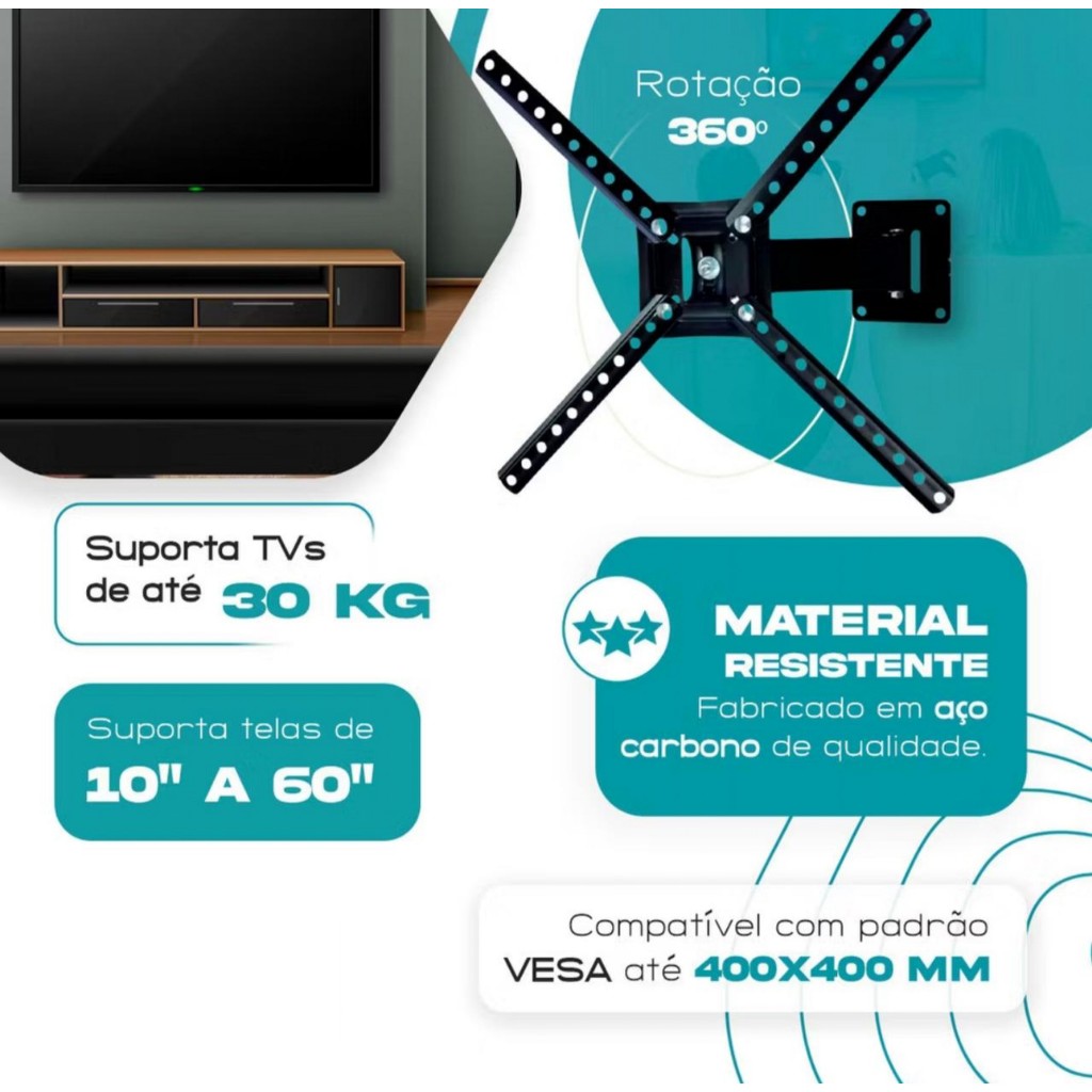 Suporte Articulado Tv parede Monitor Lcd Led oled qled Plasma 15 a 60 Polegadas