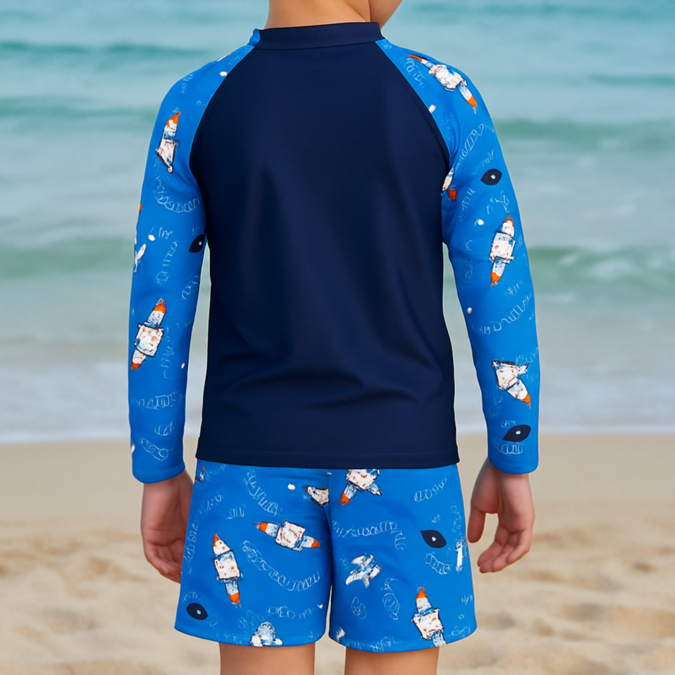 Conjunto Sunga Boxer e Blusa Térmica Infantil Menino Proteção UV 50+ Moda Praia Piscina Natação