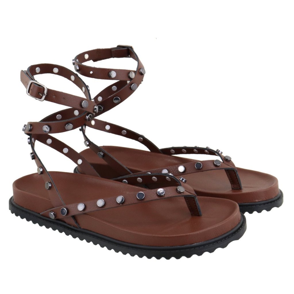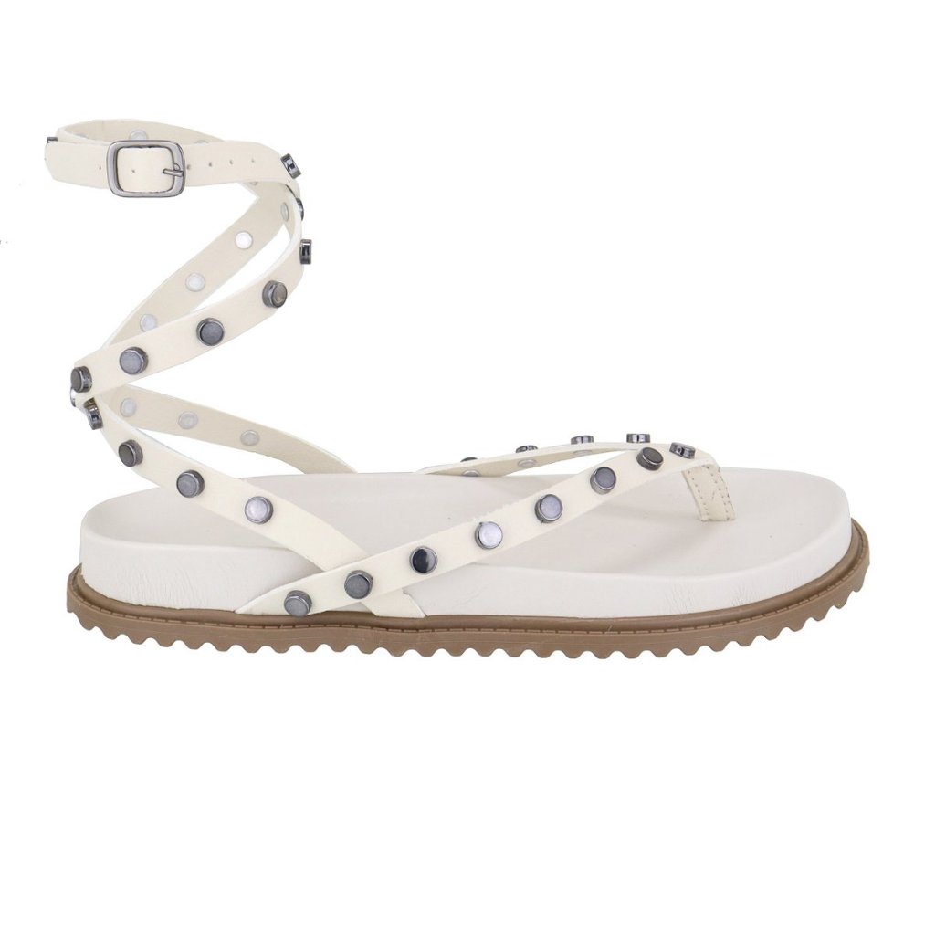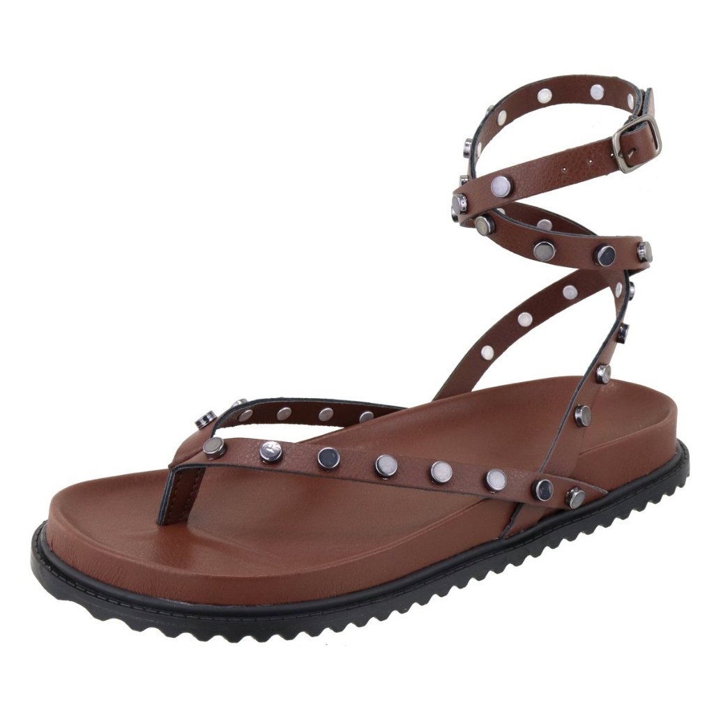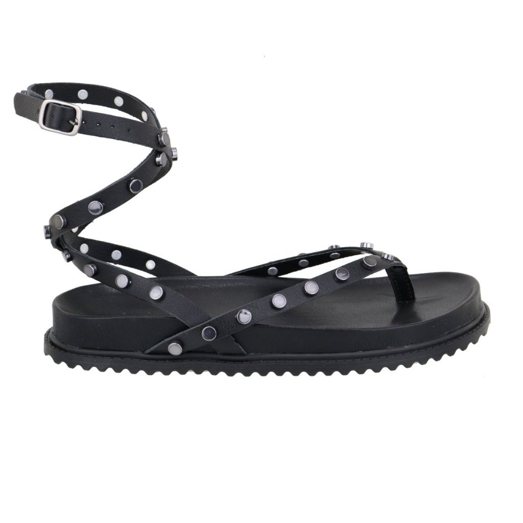 Papete Feminina Rasteira De Amarração no Tornozelo e Com Pastilhas