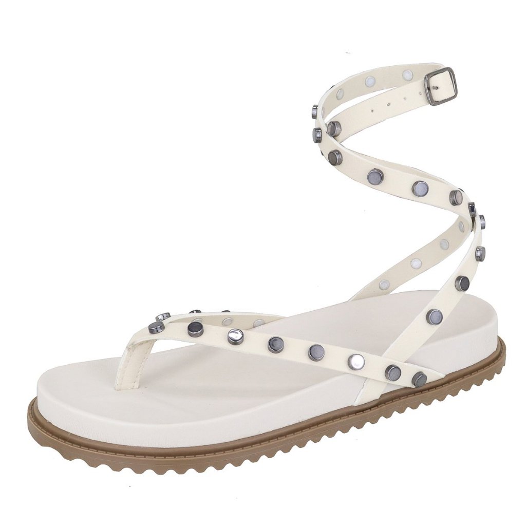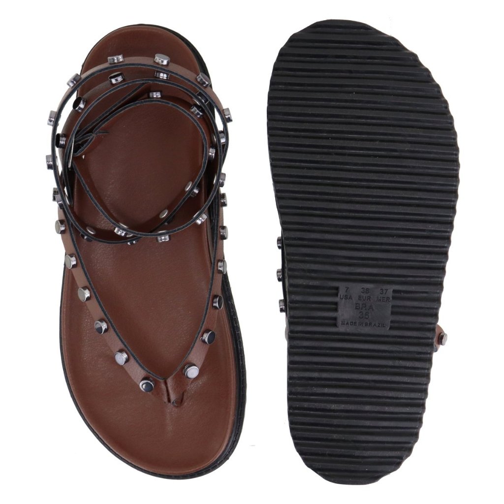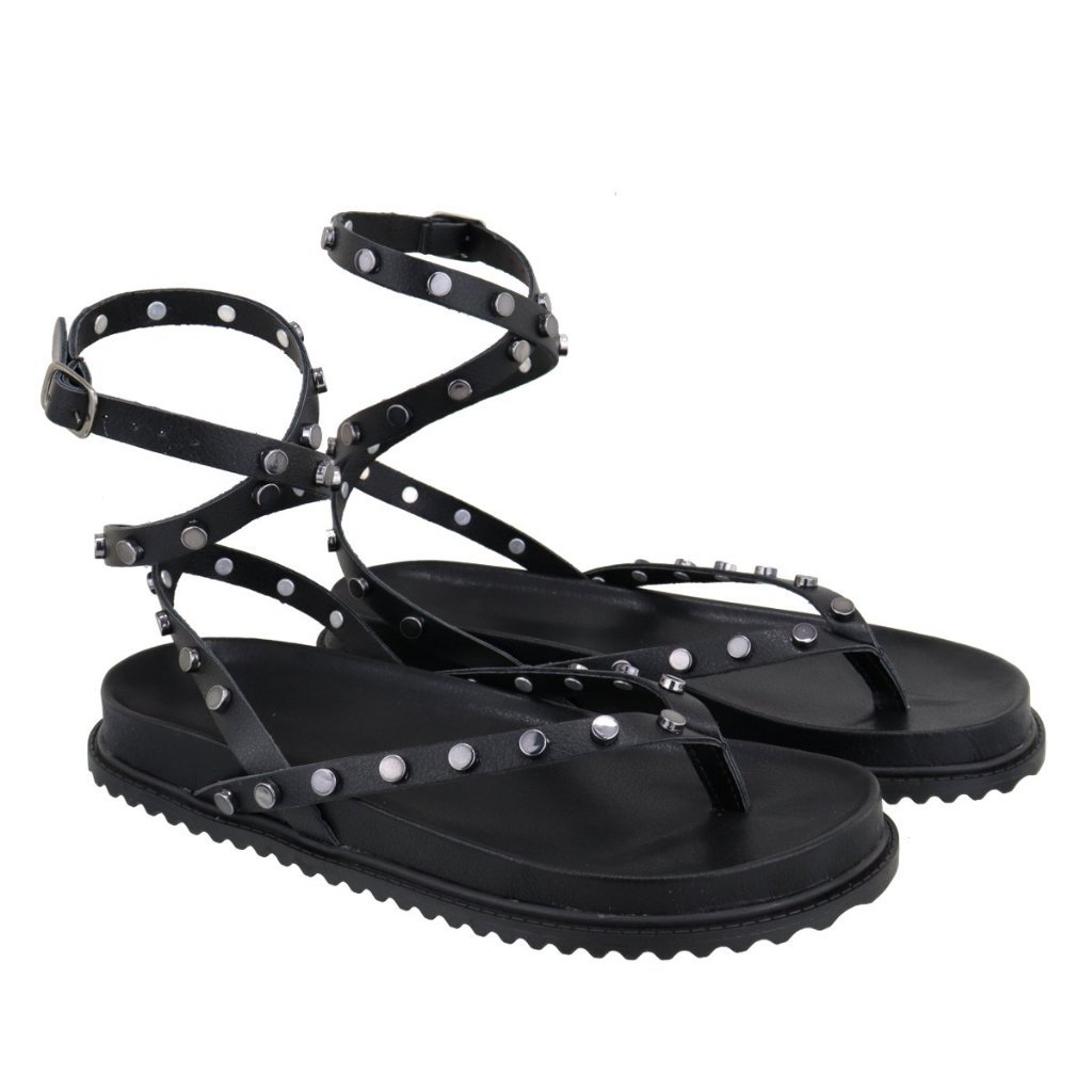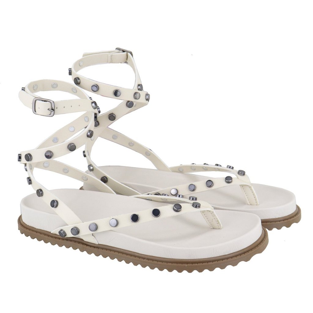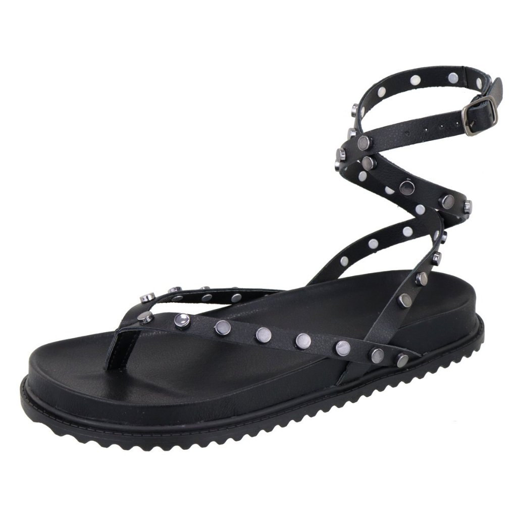 Papete Feminina Rasteira De Amarração no Tornozelo e Com Pastilhas