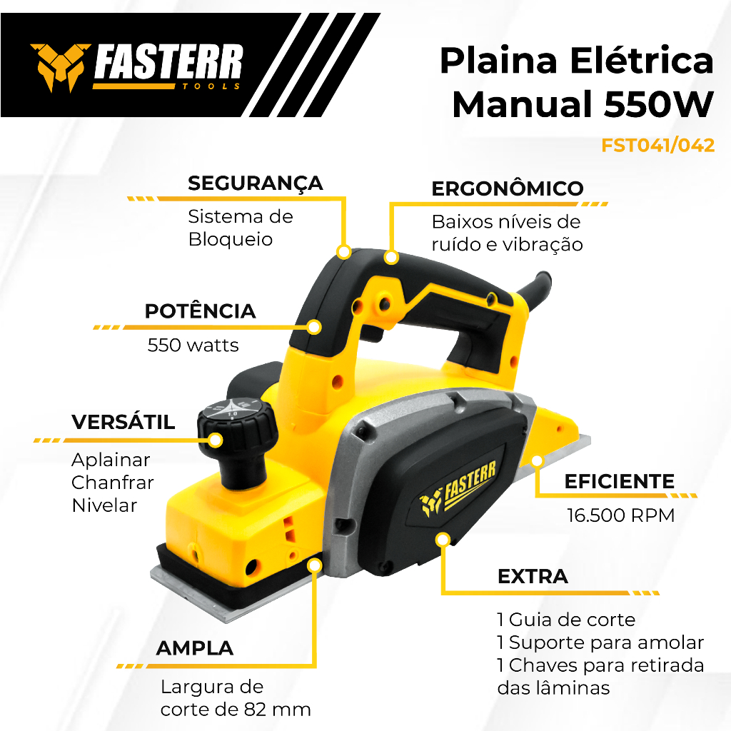 Plaina Elétrica Manual 550W 110V FST041 - Fasterr
