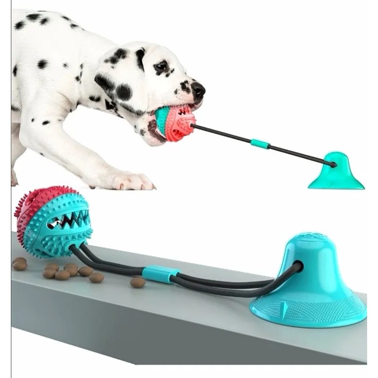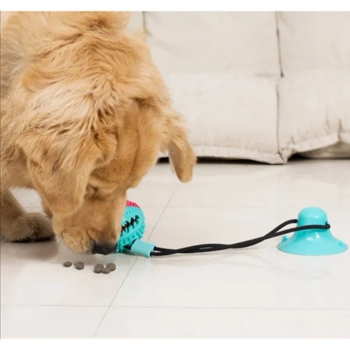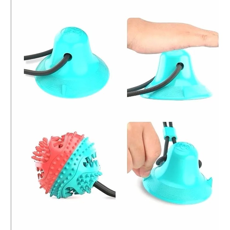 Brinquedo Interativo Bolinha Com Sino Gruda No Chão Ventosa Puxar Morder Pets Cachorro