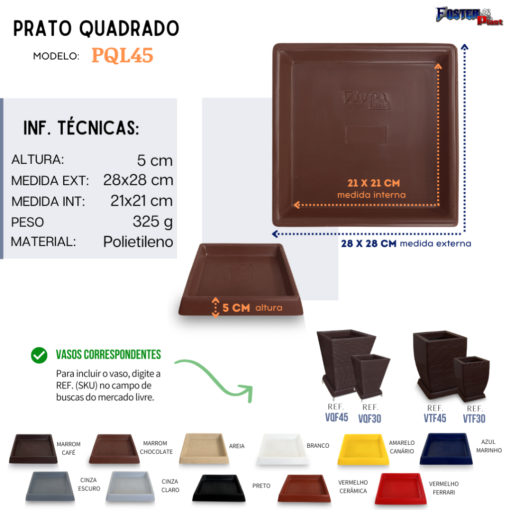Kit 2 Pratos Base Quadrado 21x21 Cm Coletor e Aparador de Agua para Vasos de Plantas em Polietileno