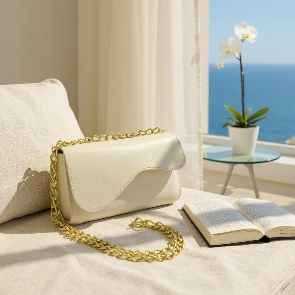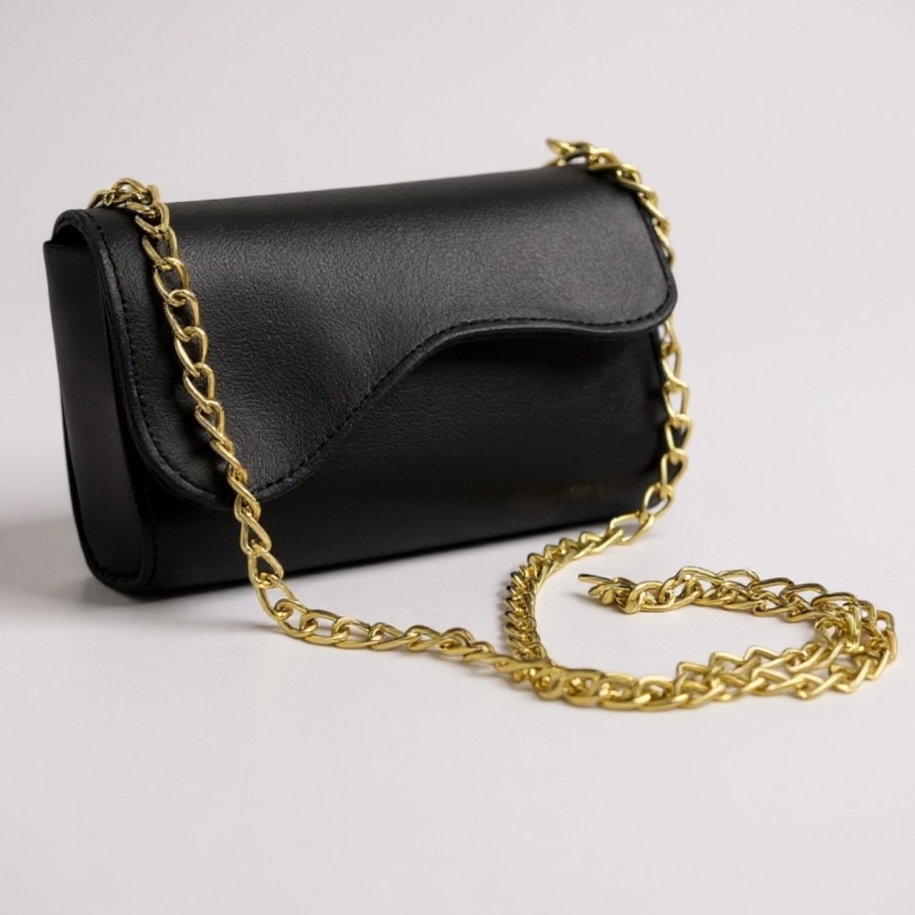 Bolsinha pequena com corrente reforçada transversal e ombro fechamento em dois imãs cabe celular
