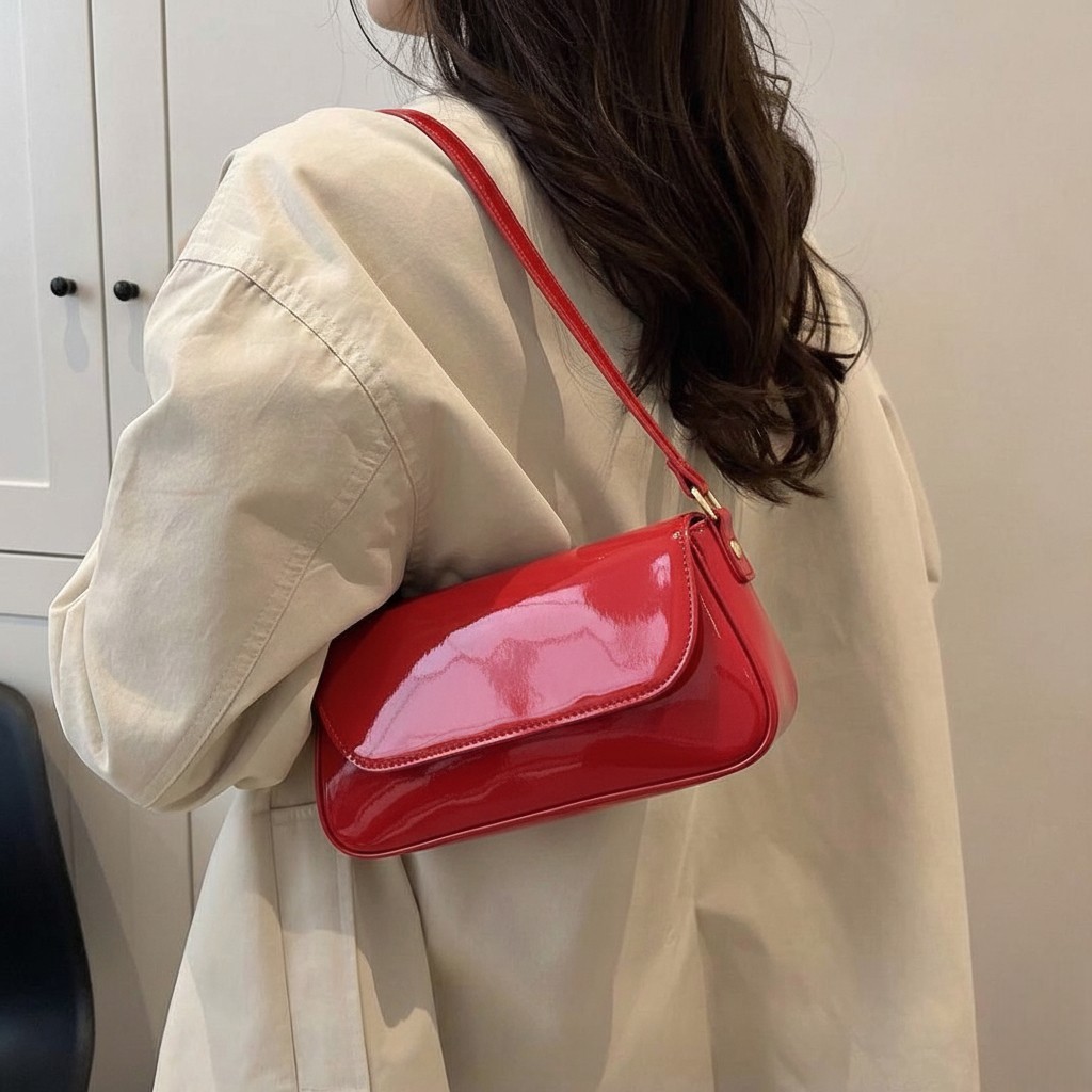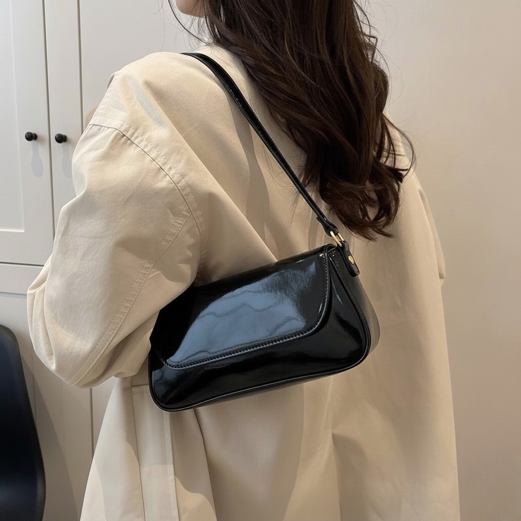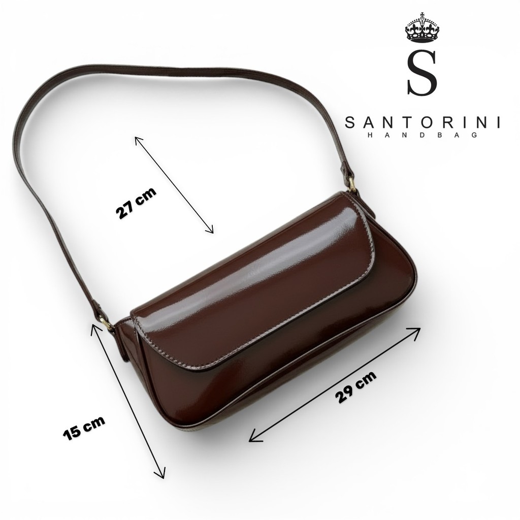 Bolsa Feminina Baguete Verniz Café Alça De Ombro Fina Estilosa E Casual