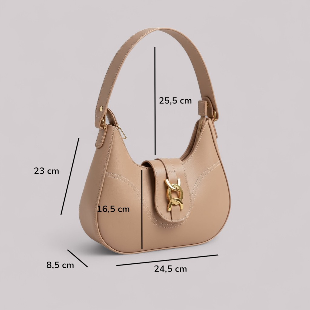 Bolsa Feminina Nude Bege Baguete de Ombro Espaçosa Casual