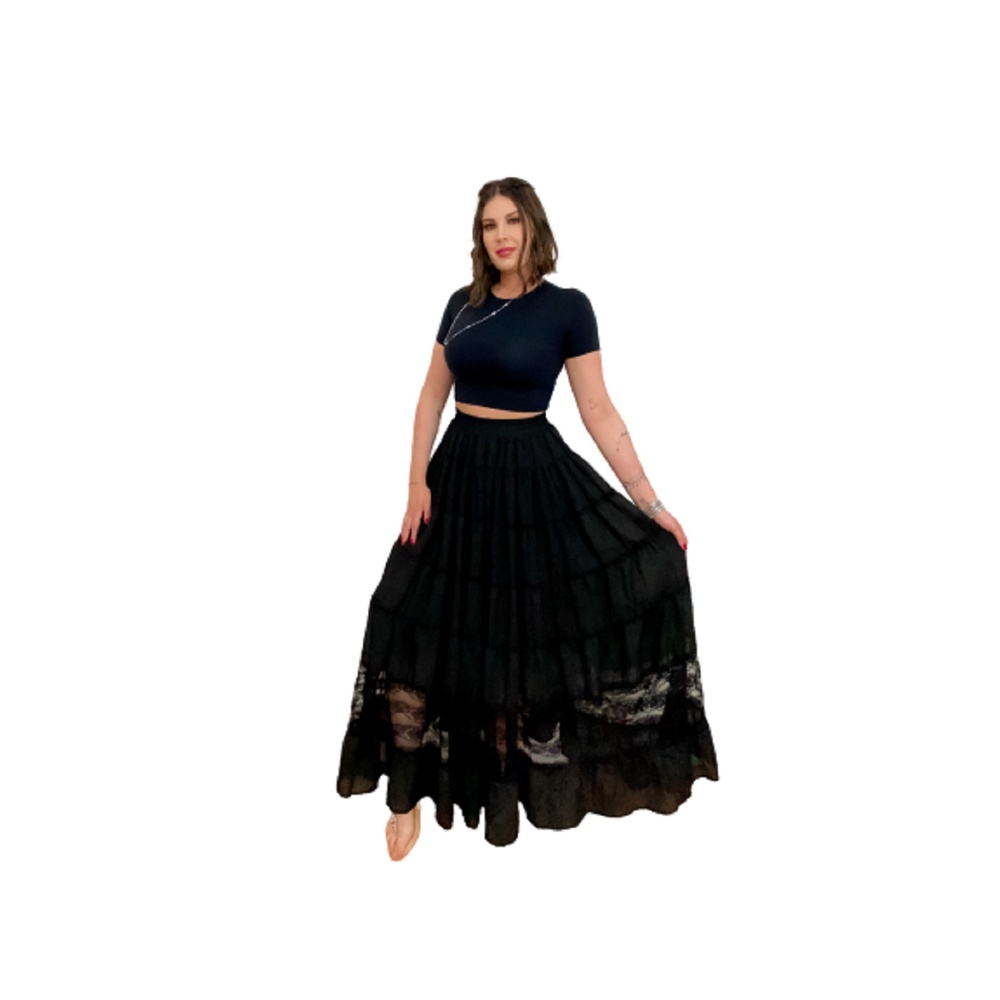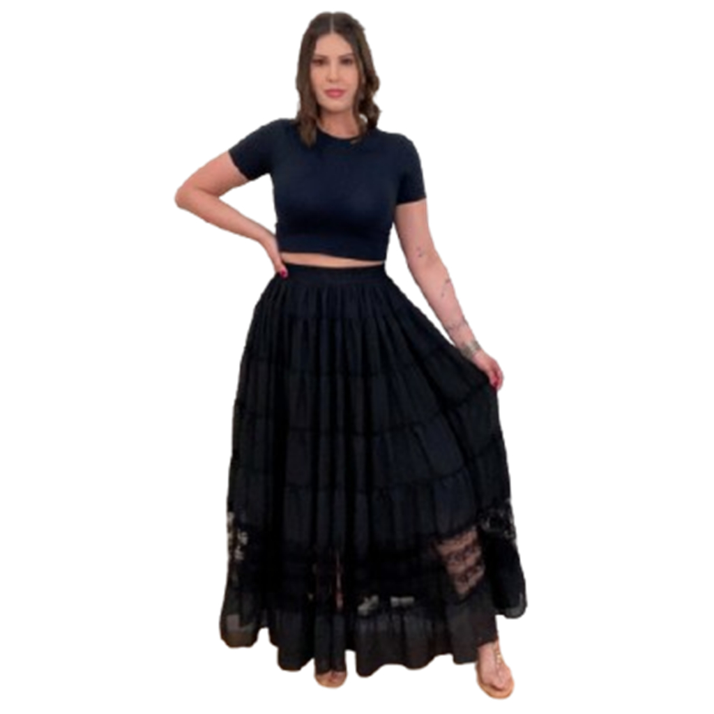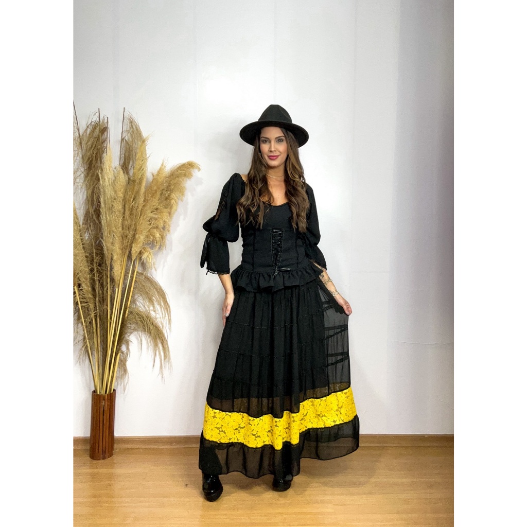 Roupa Religiosa Preta de Umbanda Candomblé Saia Feminina Modelo de Luxo Pomba-Gira em Chiffon