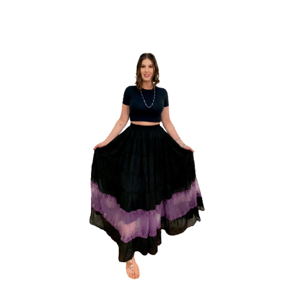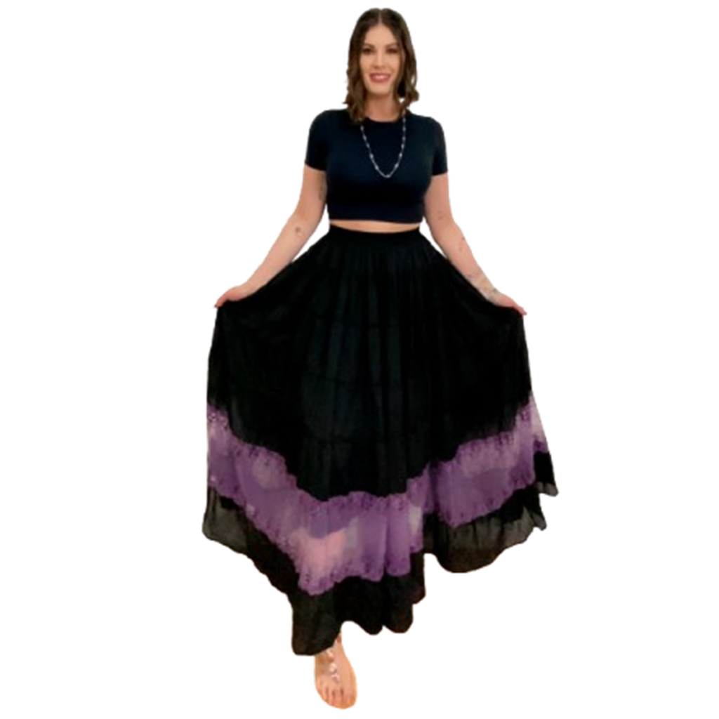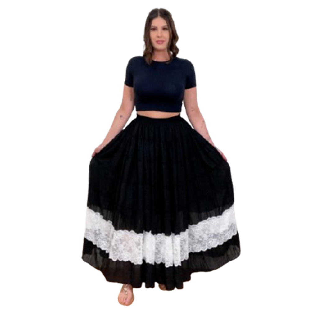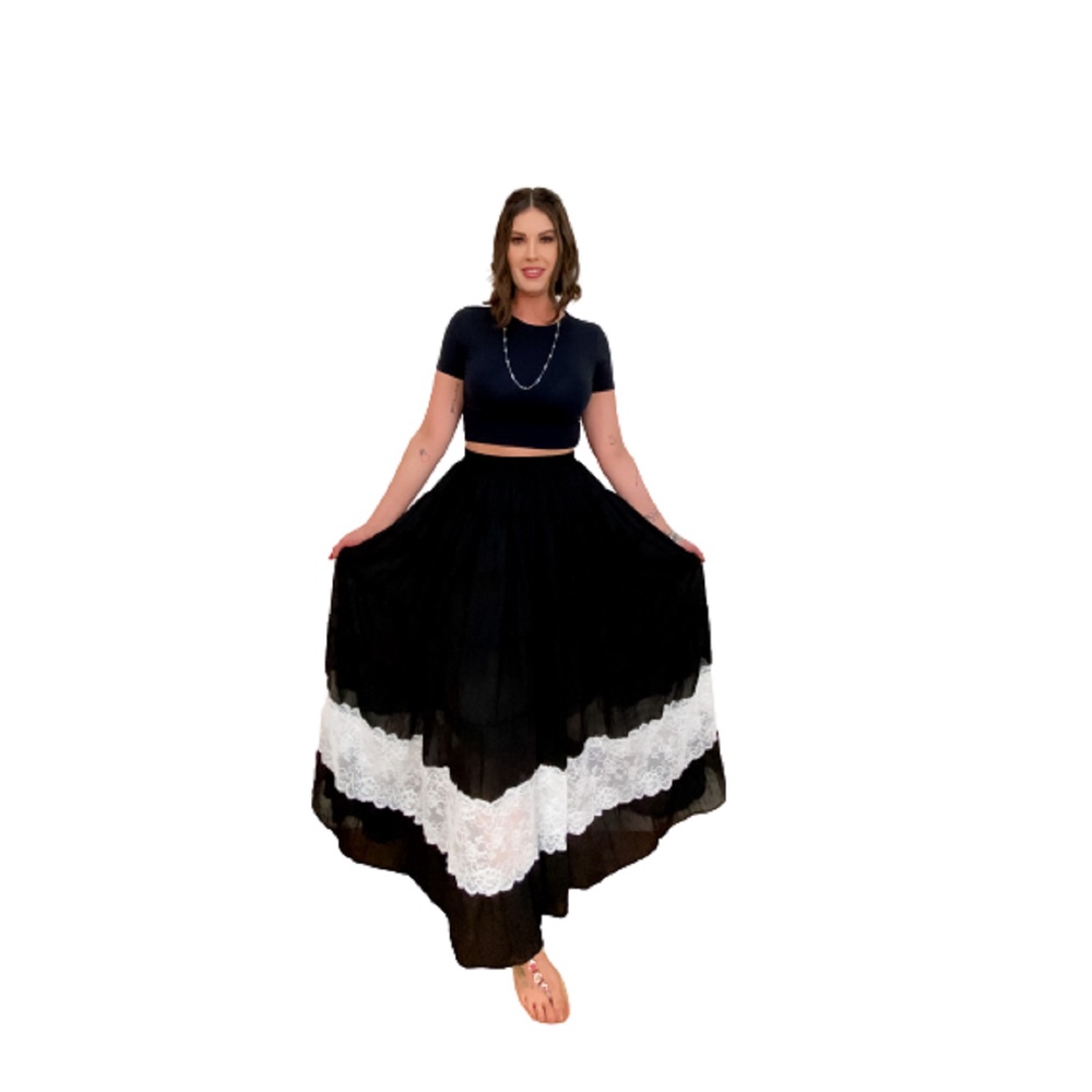 Roupa Religiosa Preta de Umbanda Candomblé Saia Feminina Modelo de Luxo Pomba-Gira em Chiffon