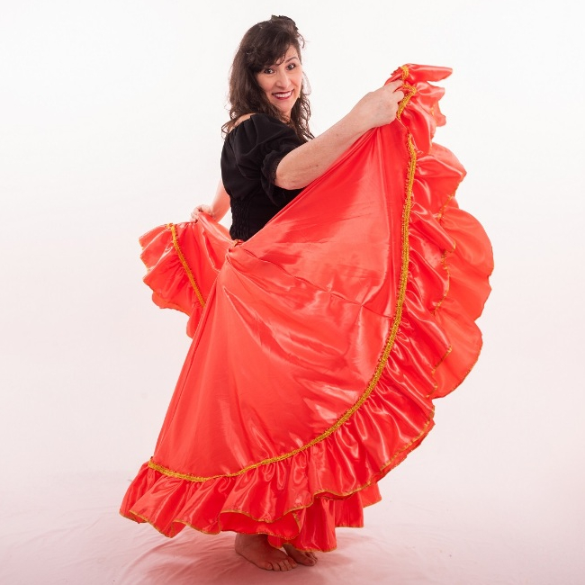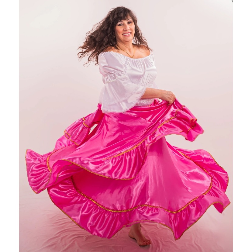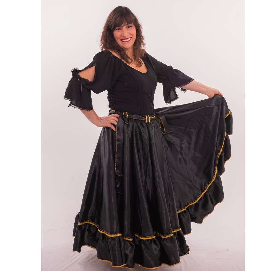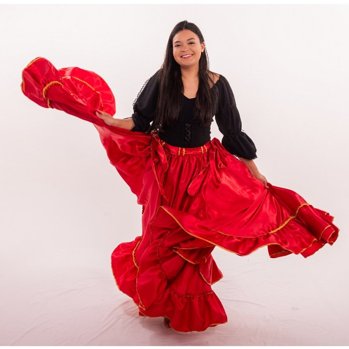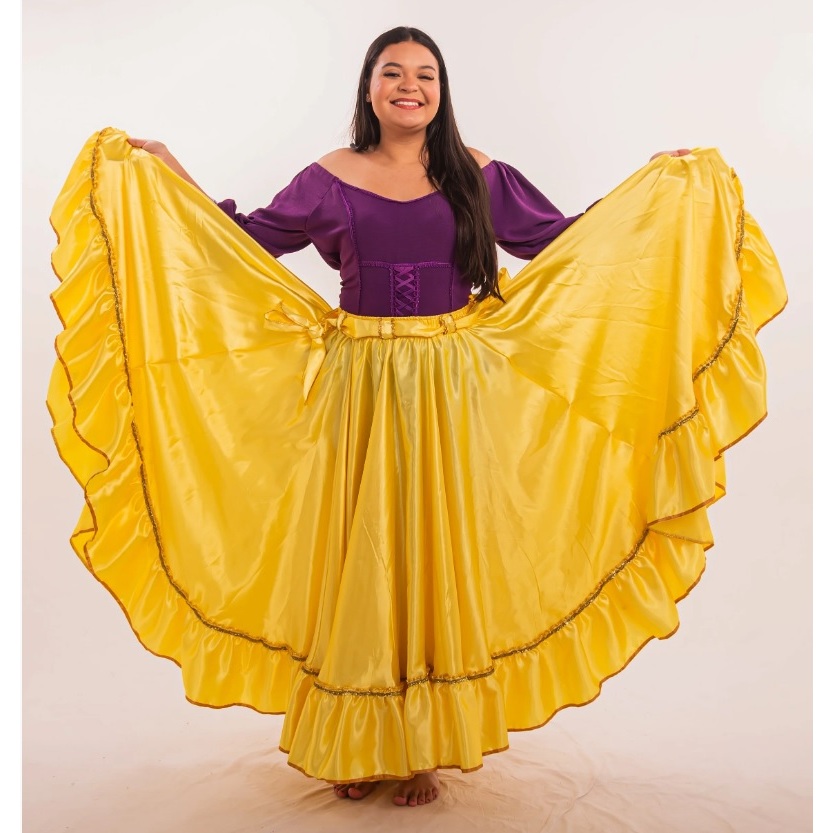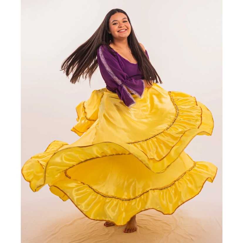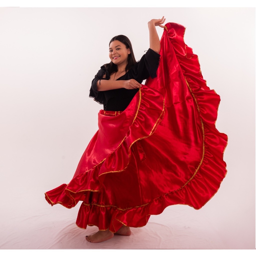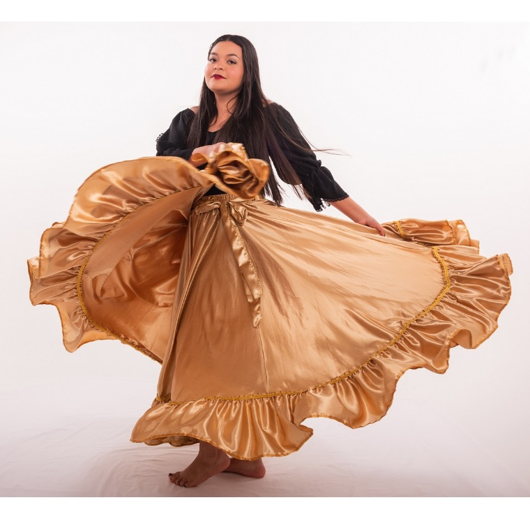 Saia Cigana Umbanda Pomba Gira com 1 babado com 14 metros de roda Madalena Candomblé Dança Cigana
