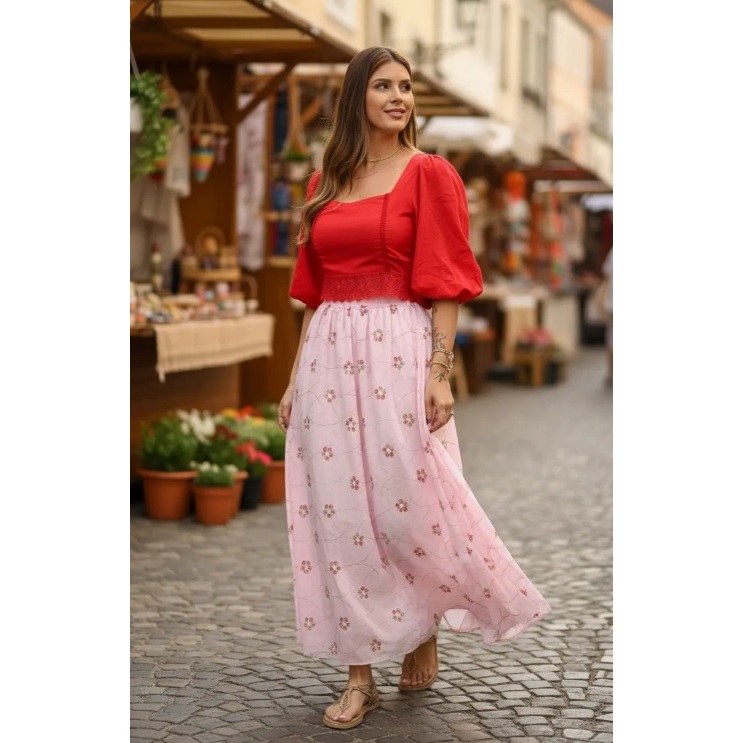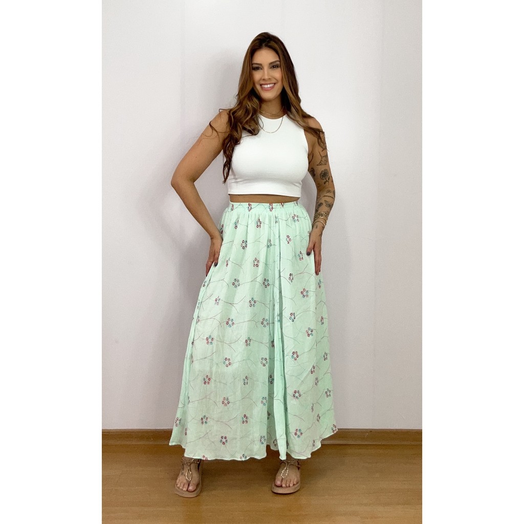 Saia Indiana Longa Hippie Cigana Moda Indiana Bordada Boho Estilo Alternativo