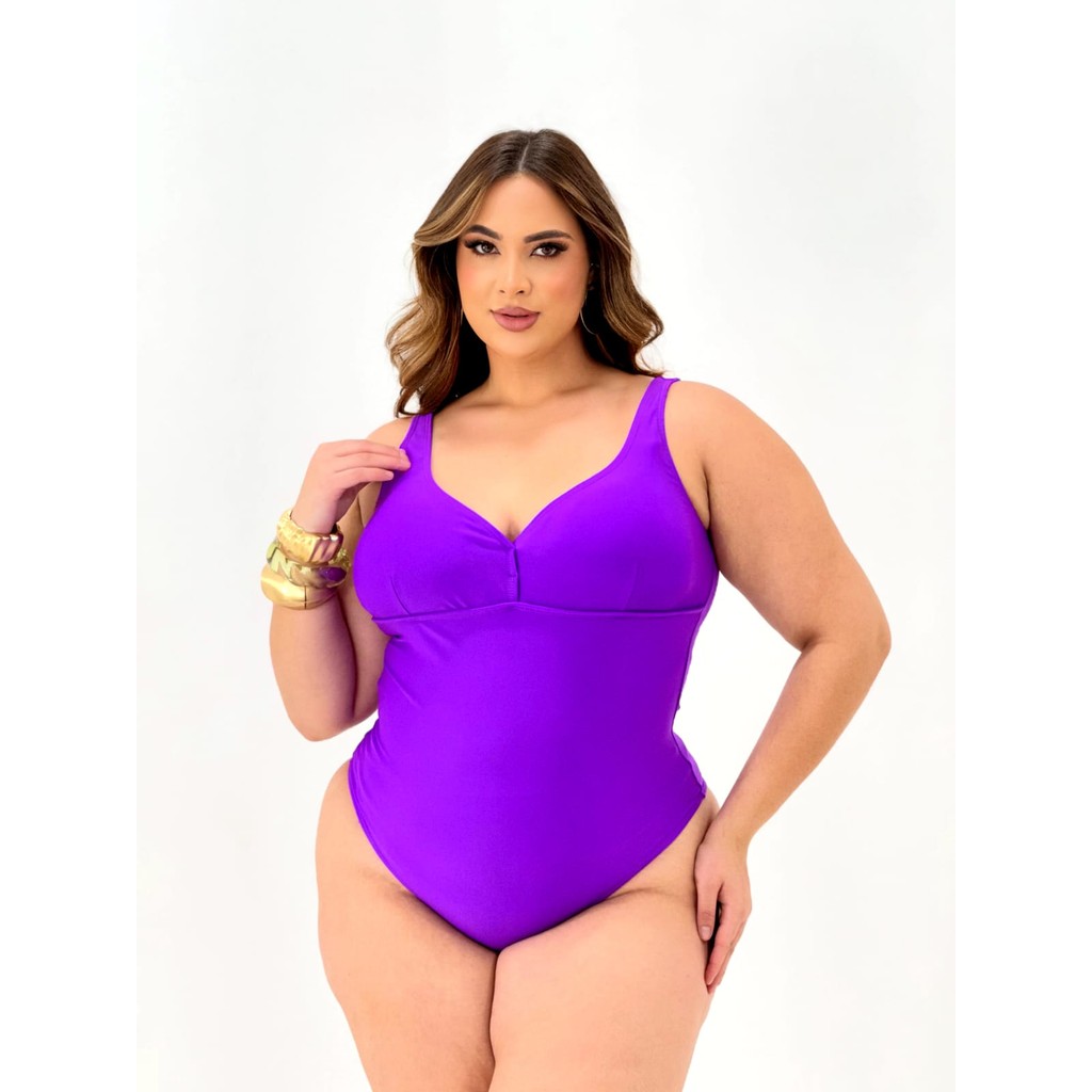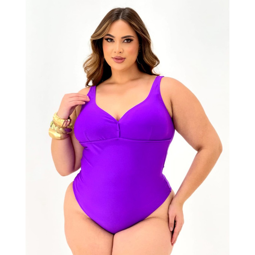 Maiô Plus Size Hidroginástica Sustentação Alças Largas Bojo Removível Afina Silhueta Forrado
