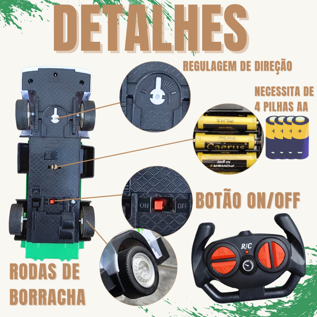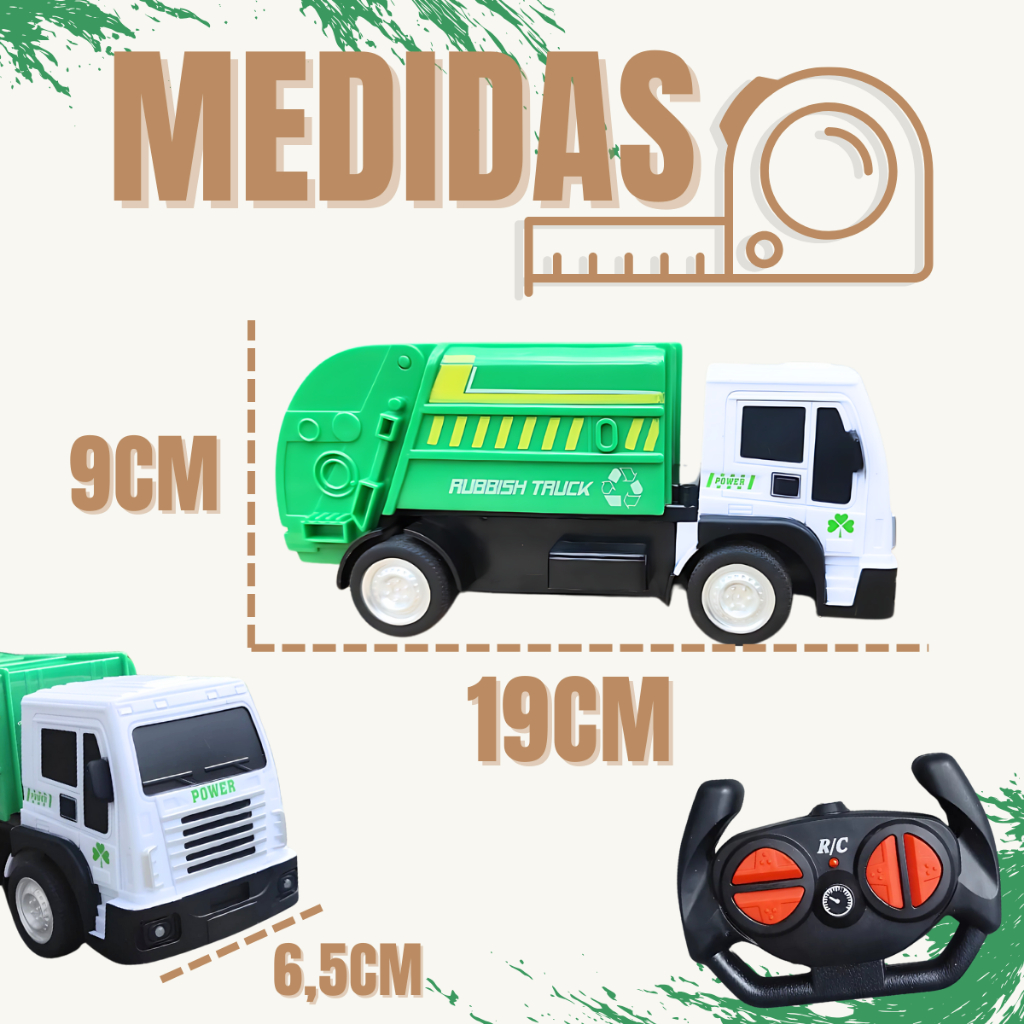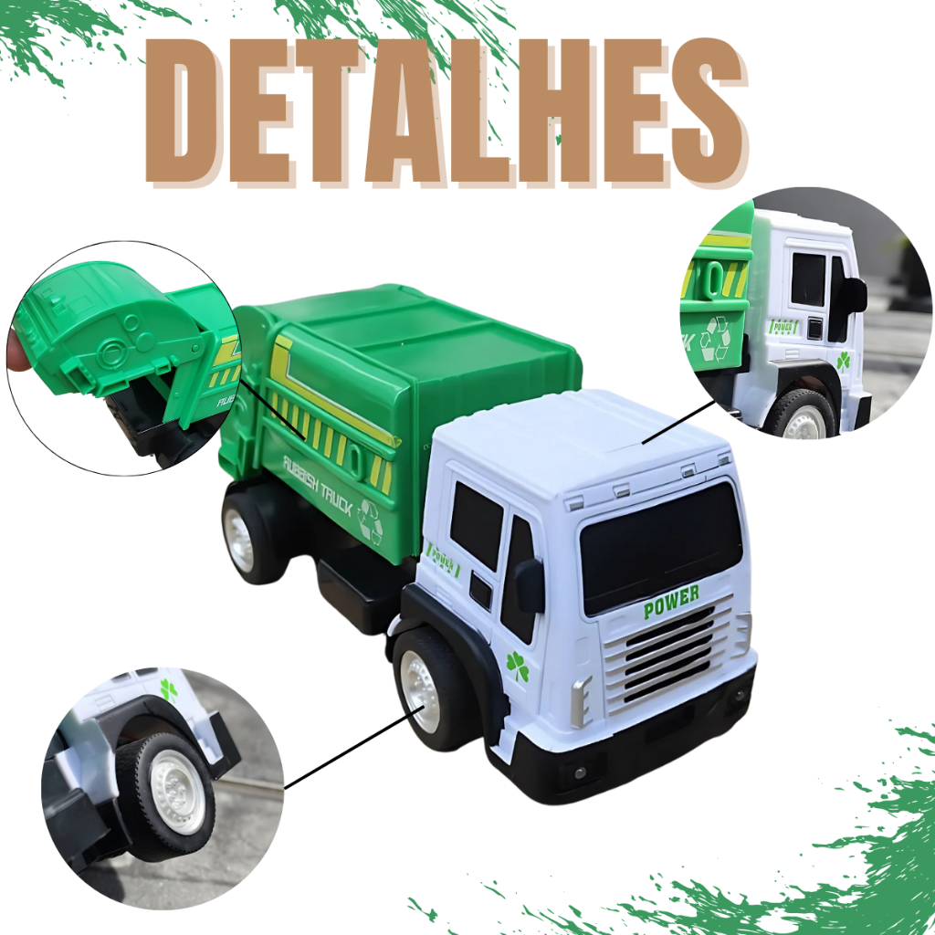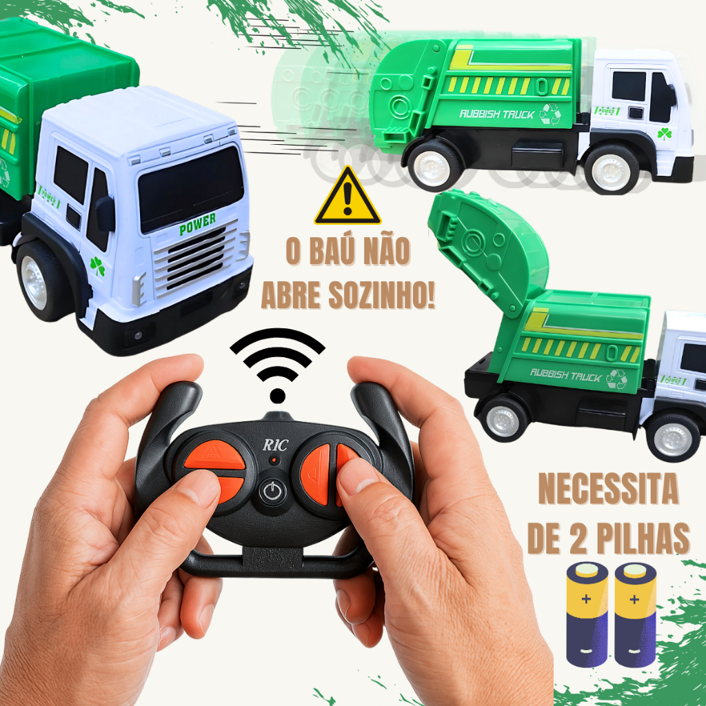 Caminhão de Lixo Coletor Abre Baú Brinquedo Controle Remoto Infantil Menino Realista Com Farol Led