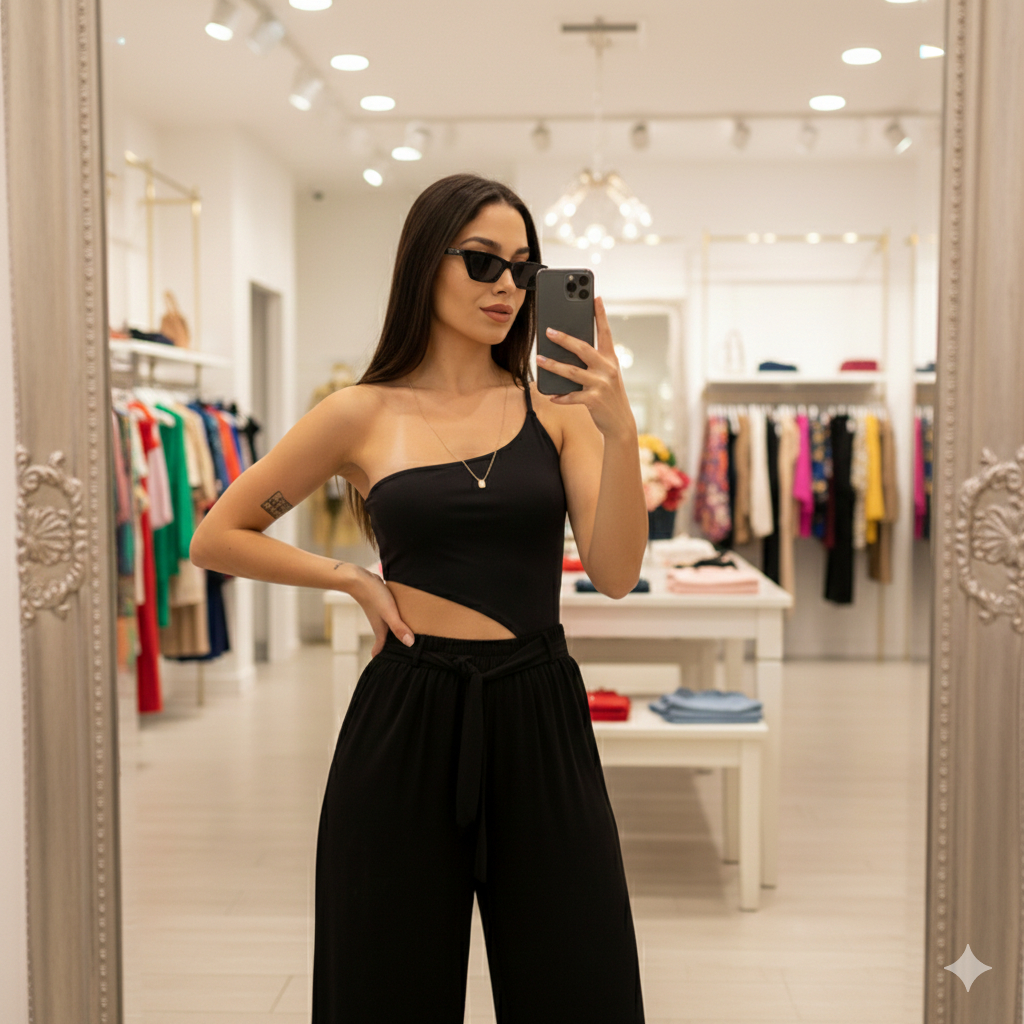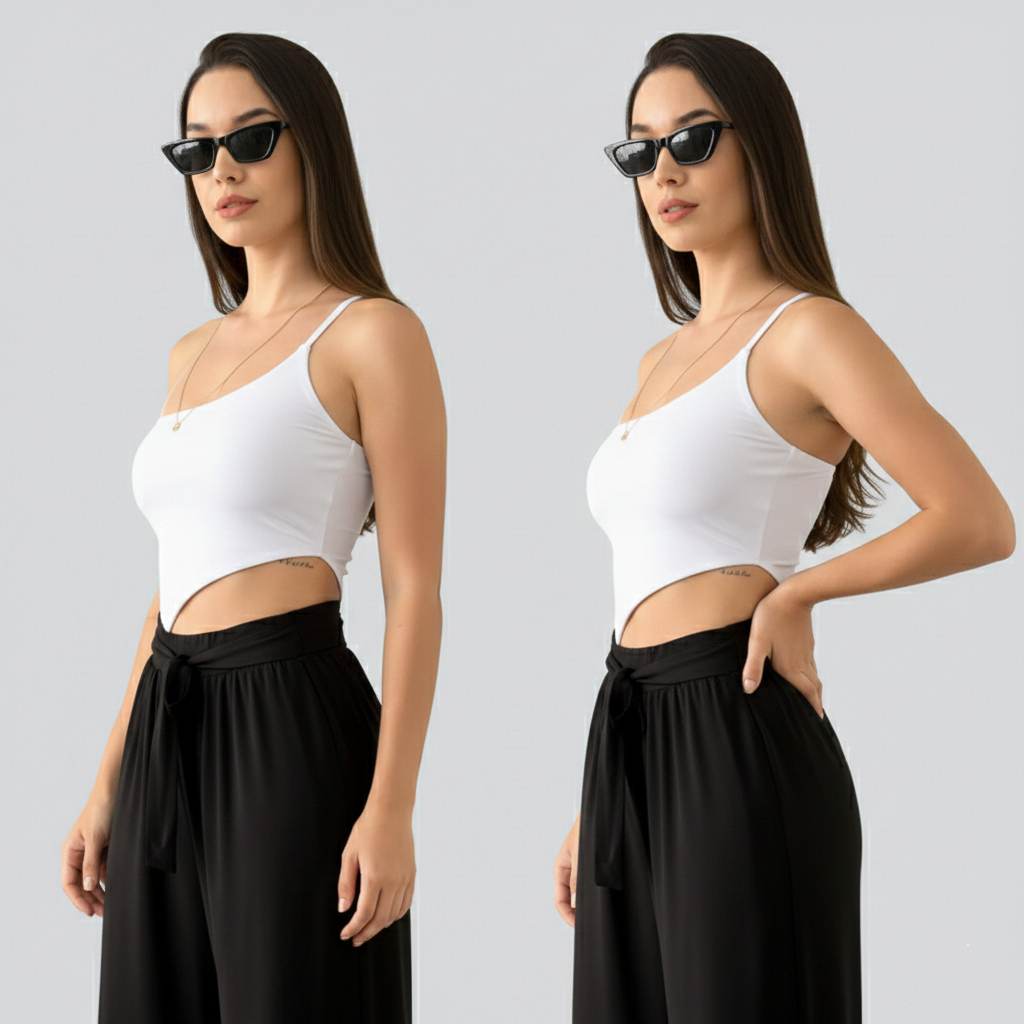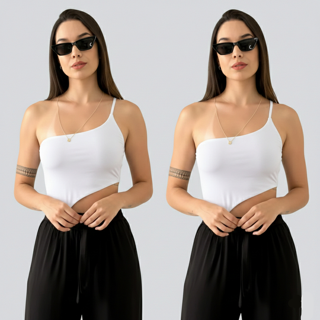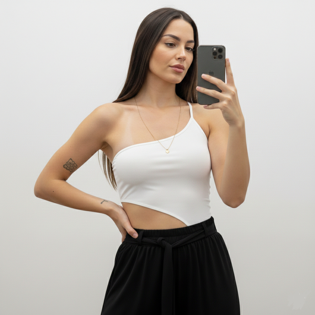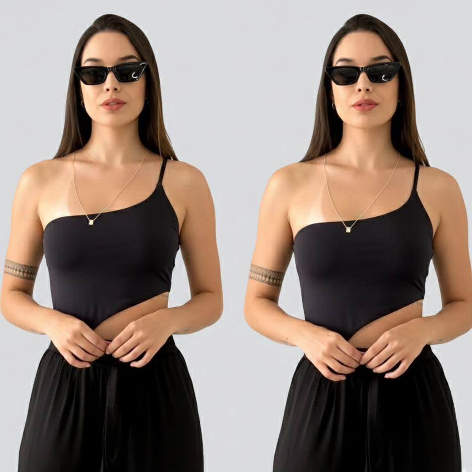 Body Feminino Um Ombro Assimétrico Camada Dupla Zero Transparência