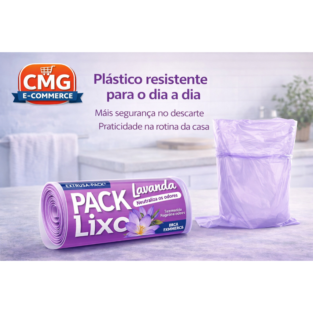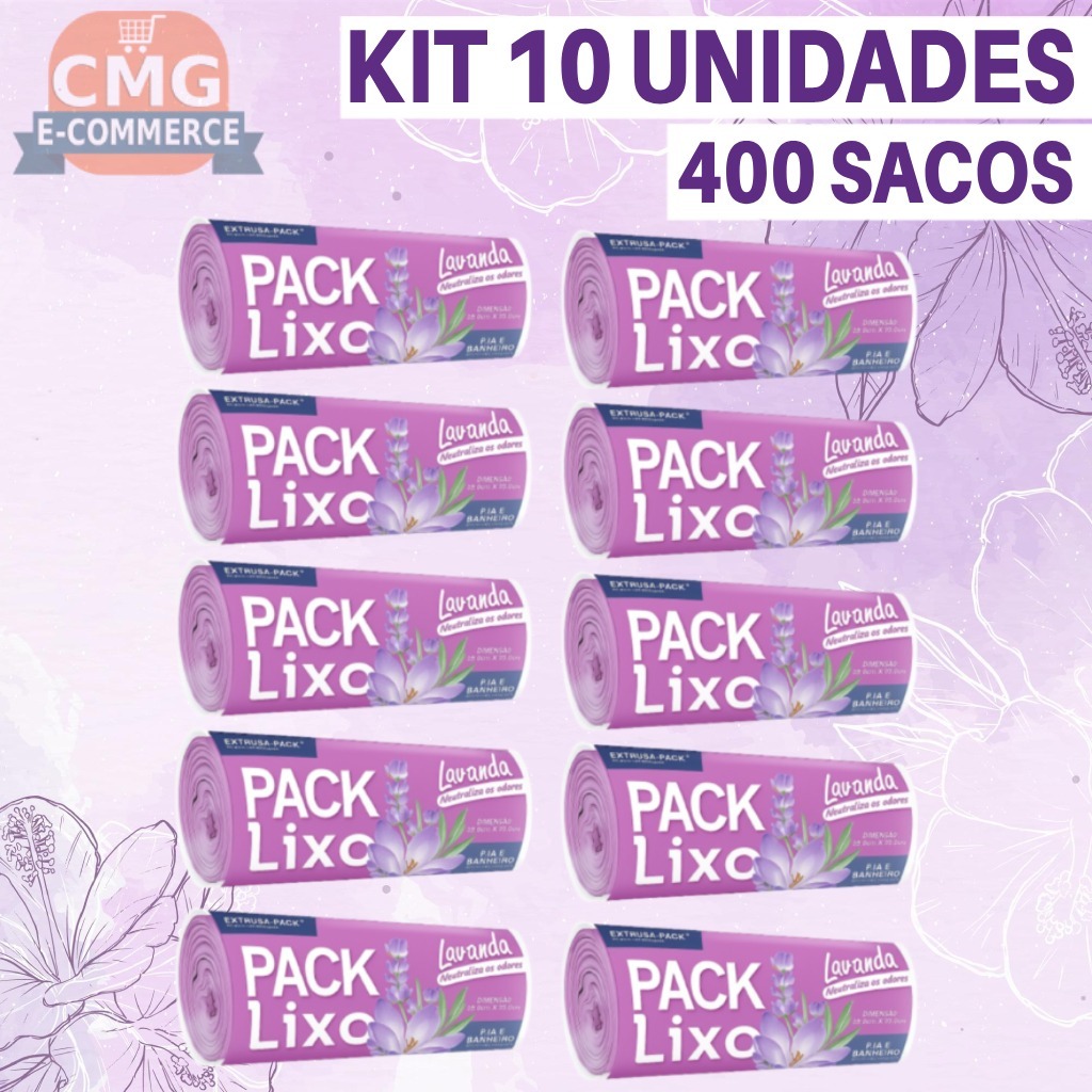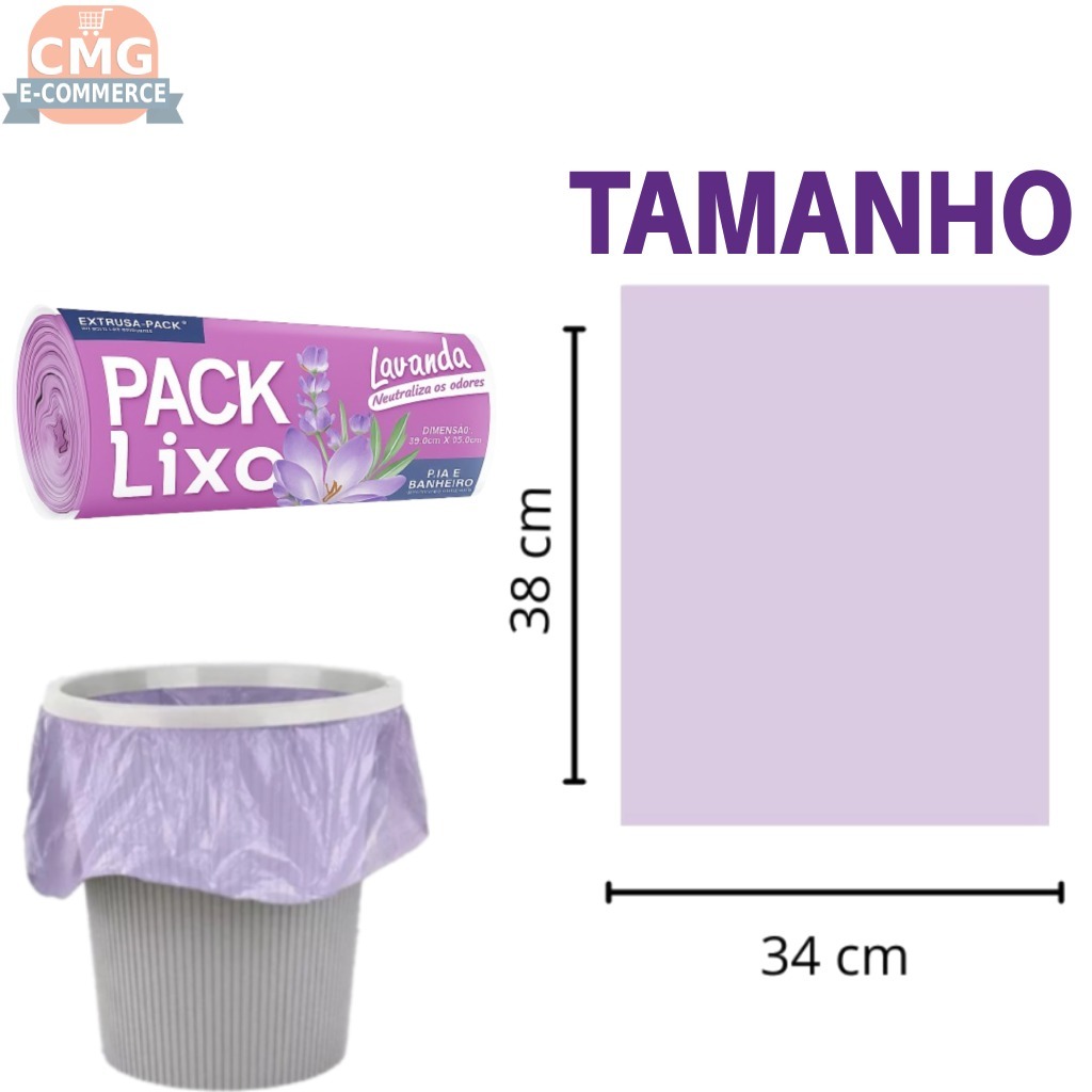Saco de Lixo Lavanda 8L – Perfumado, Anti Odor e Resistente p/ Banheiro, Pia e Cozinha (Kit 40-400)