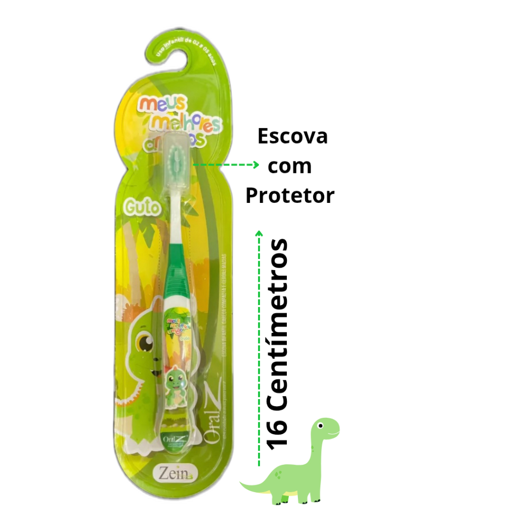 Kit 2 Escovas De Dentes Macias Infantil 1 Dinossauro Verde + 1 Unicórnio Rosa Criança Menina Menino