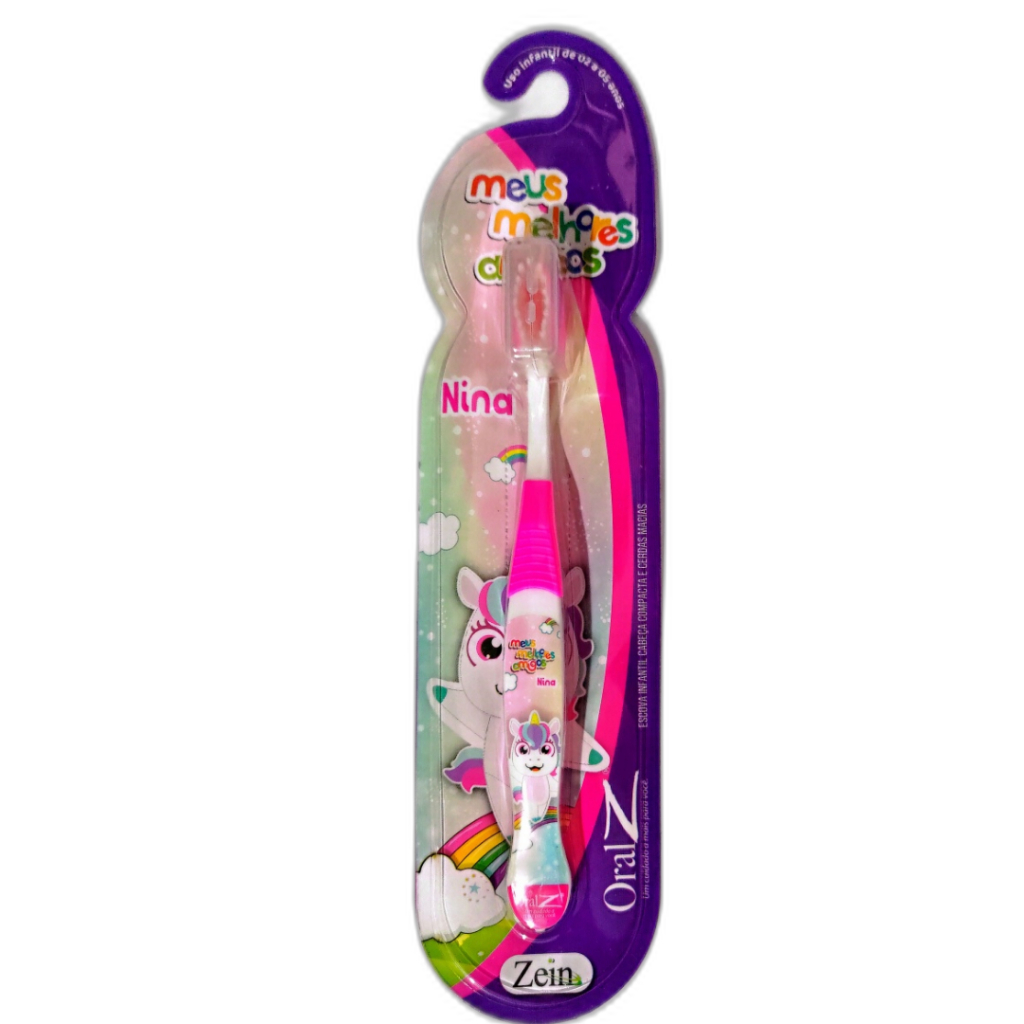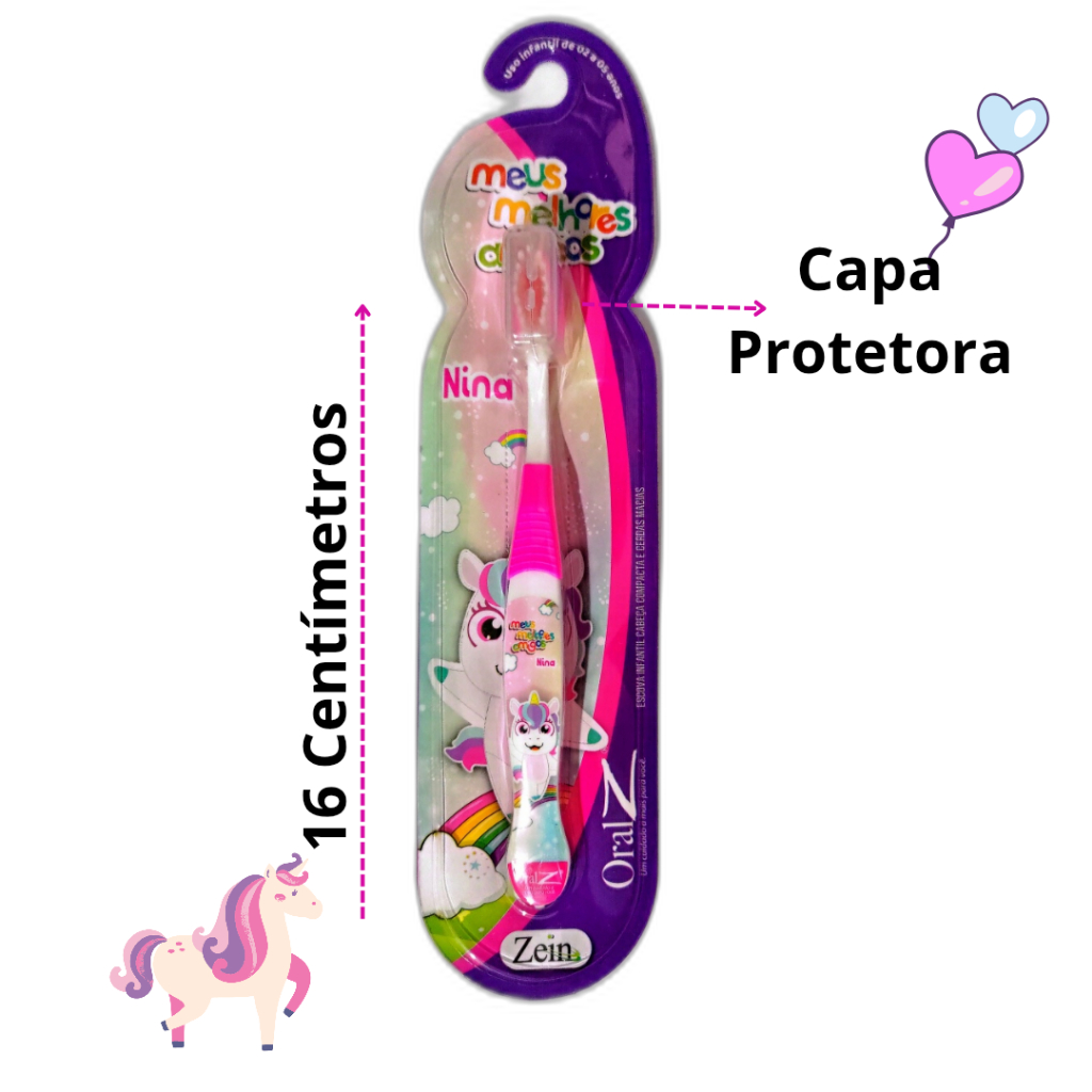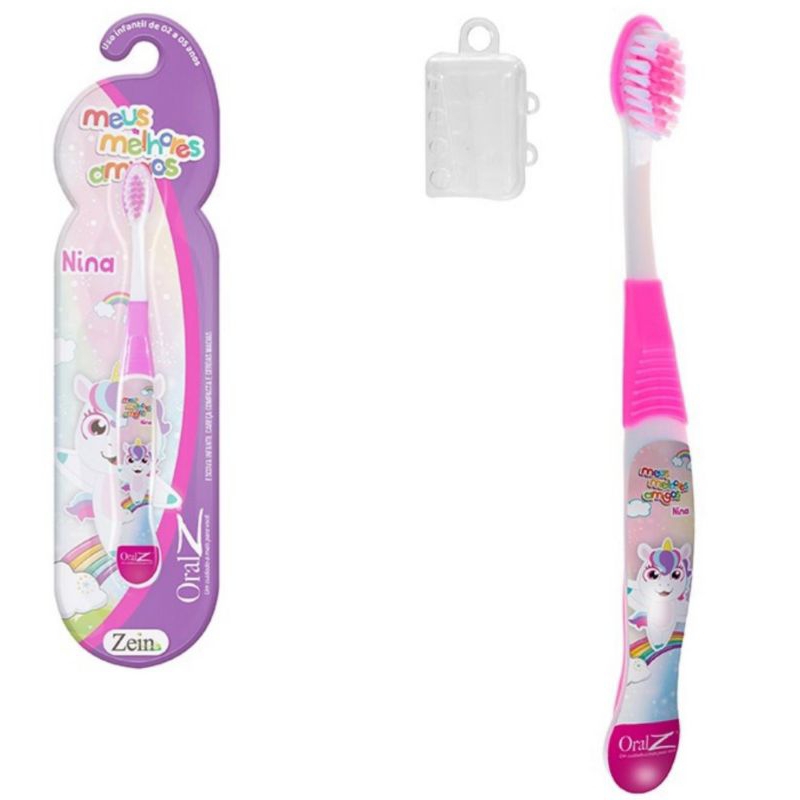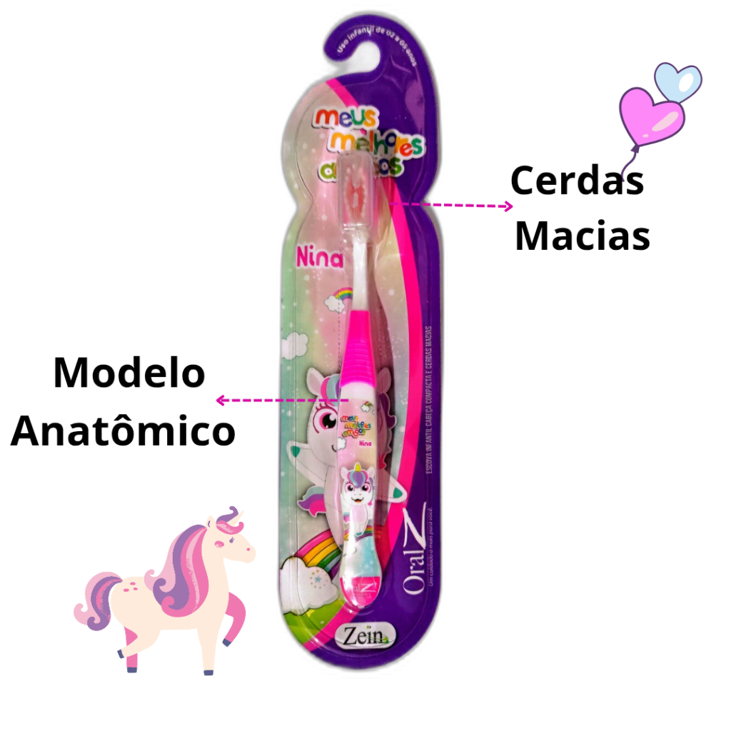 Kit 2 Escovas De Dentes Rosa Macia Infantil Criança Unicórnio
