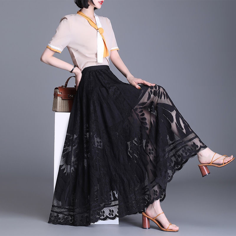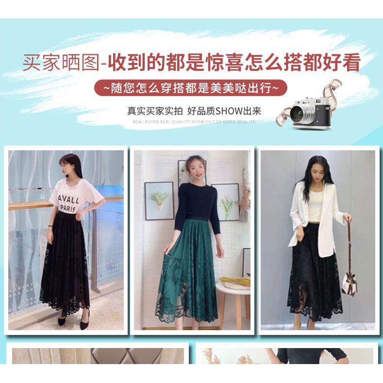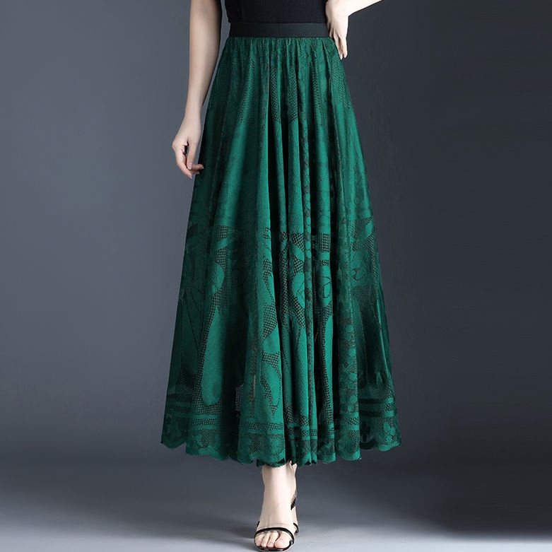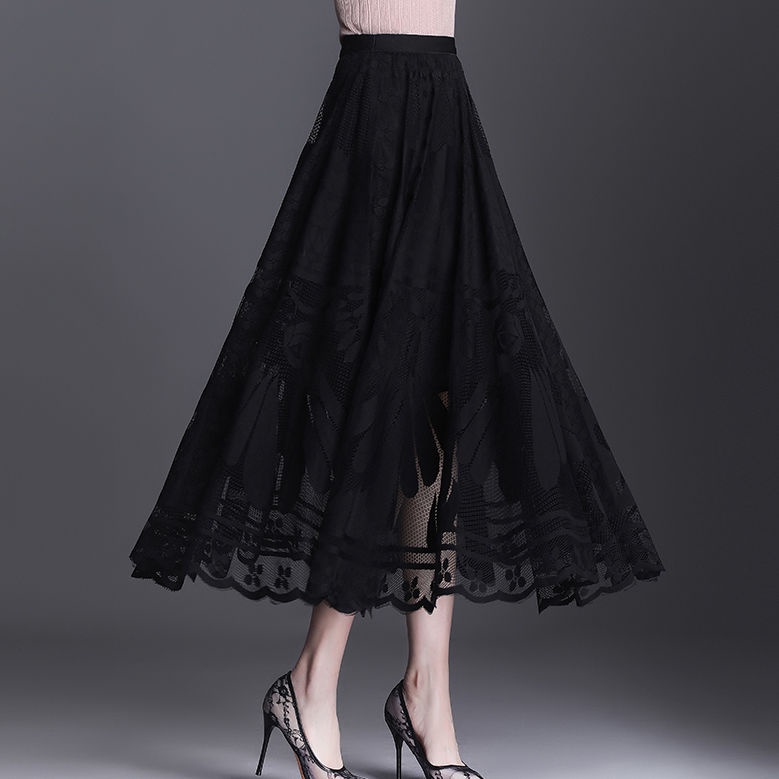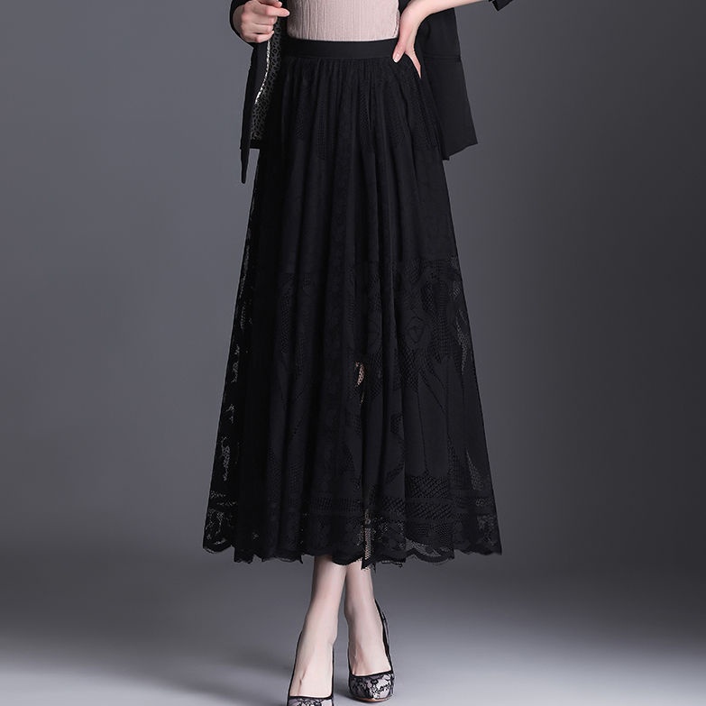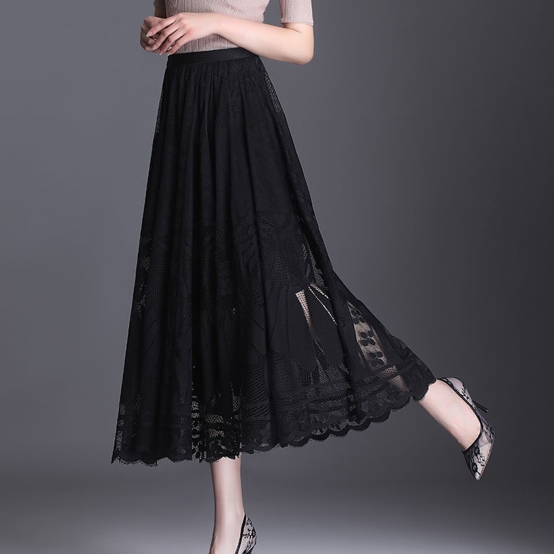 2022 nova saia de renda feminina Popular All-Match a linha saia de comprimento médio grande balanço malha oco fada pliss