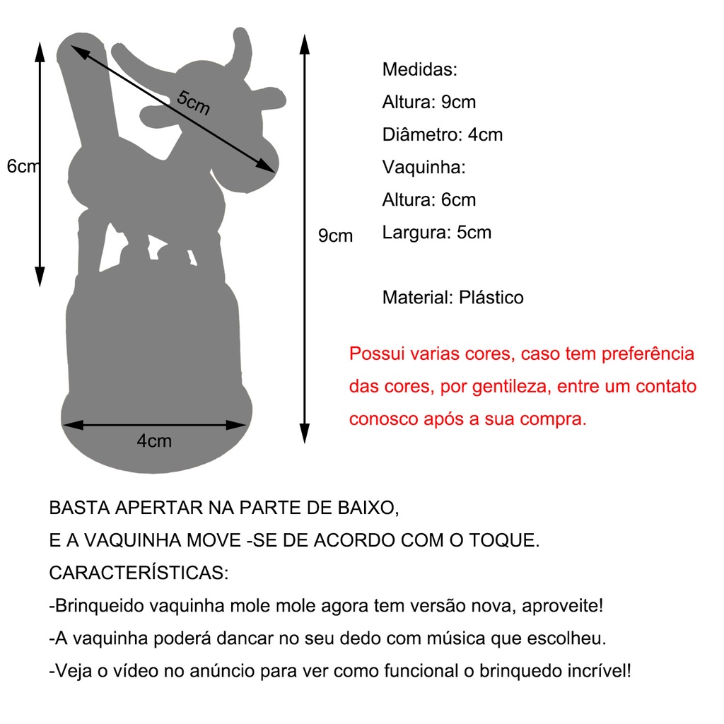 Brinquedo vaquinha mole dançarina vaca bonita dançando