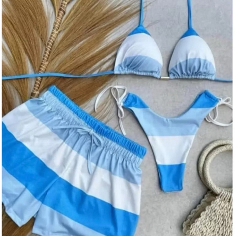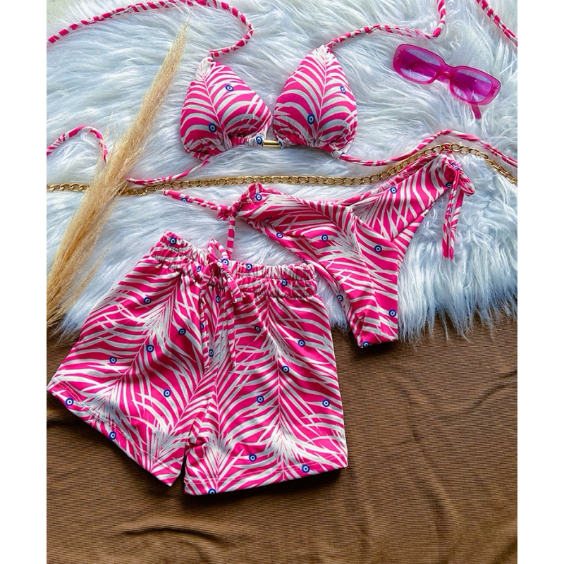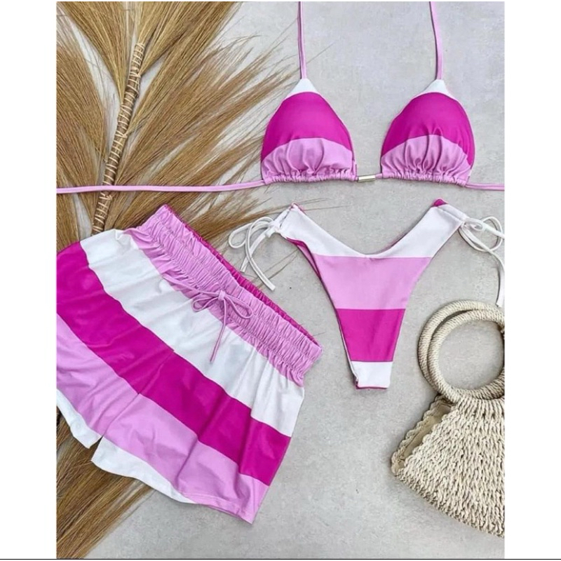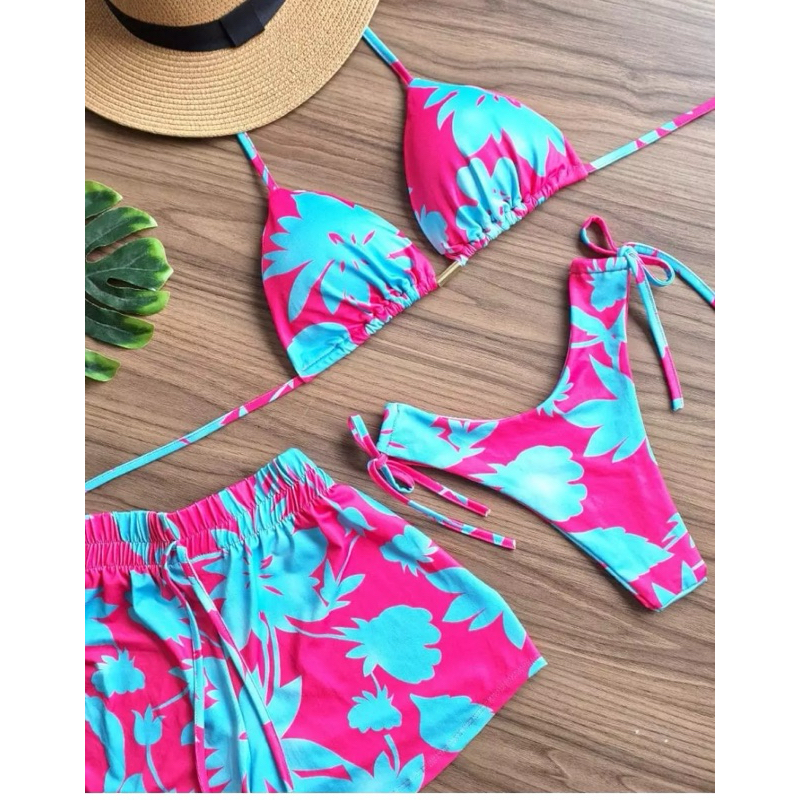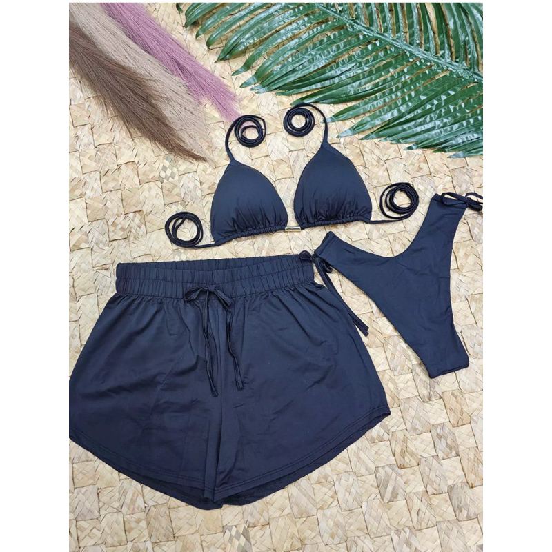 Biquini kit 3 pecas triquini biquini short Cortininha Bojo removível Short Verão 2024 Oferta