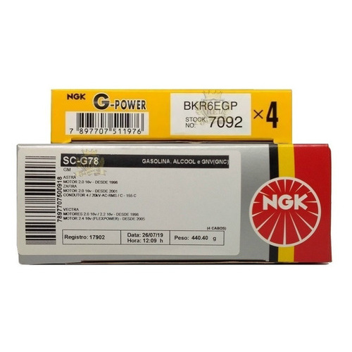 Kit Cabo E Vela Ignição Platinum Gpower Ngk Astra Vectra Zafira 2.0 2.2 16v Gasolina ou Gnv Desde 98 Scg78 + Bkr6egp