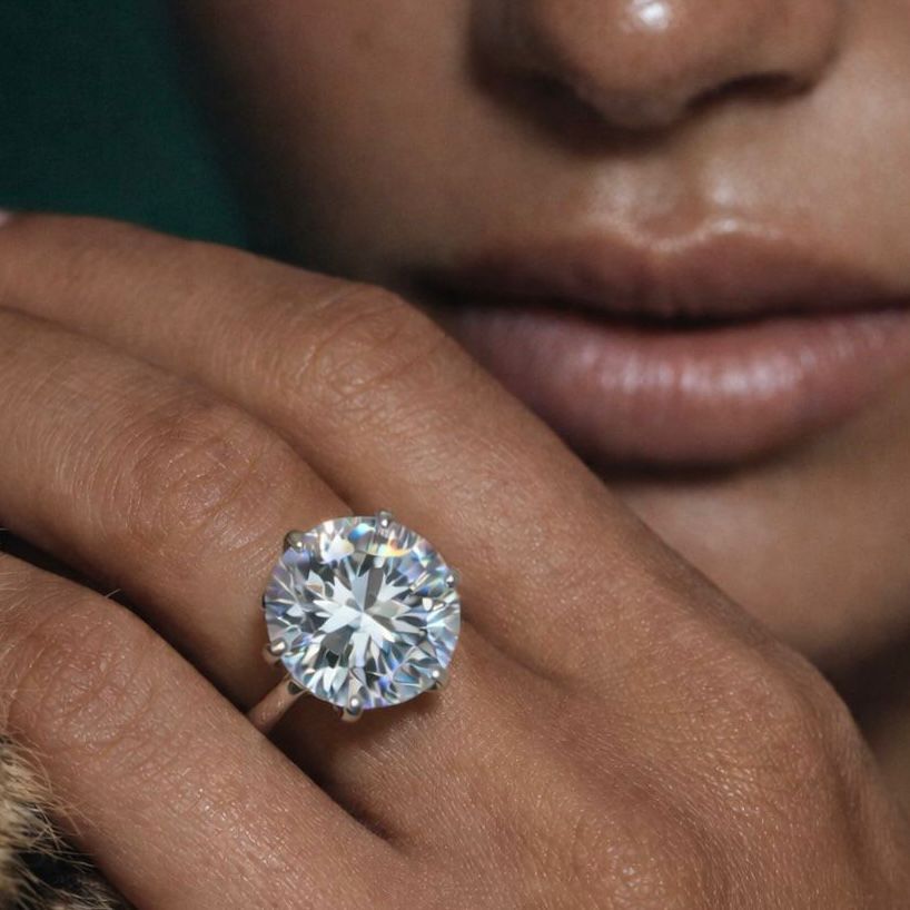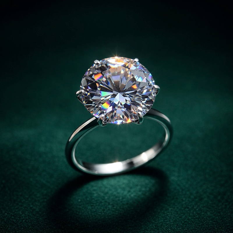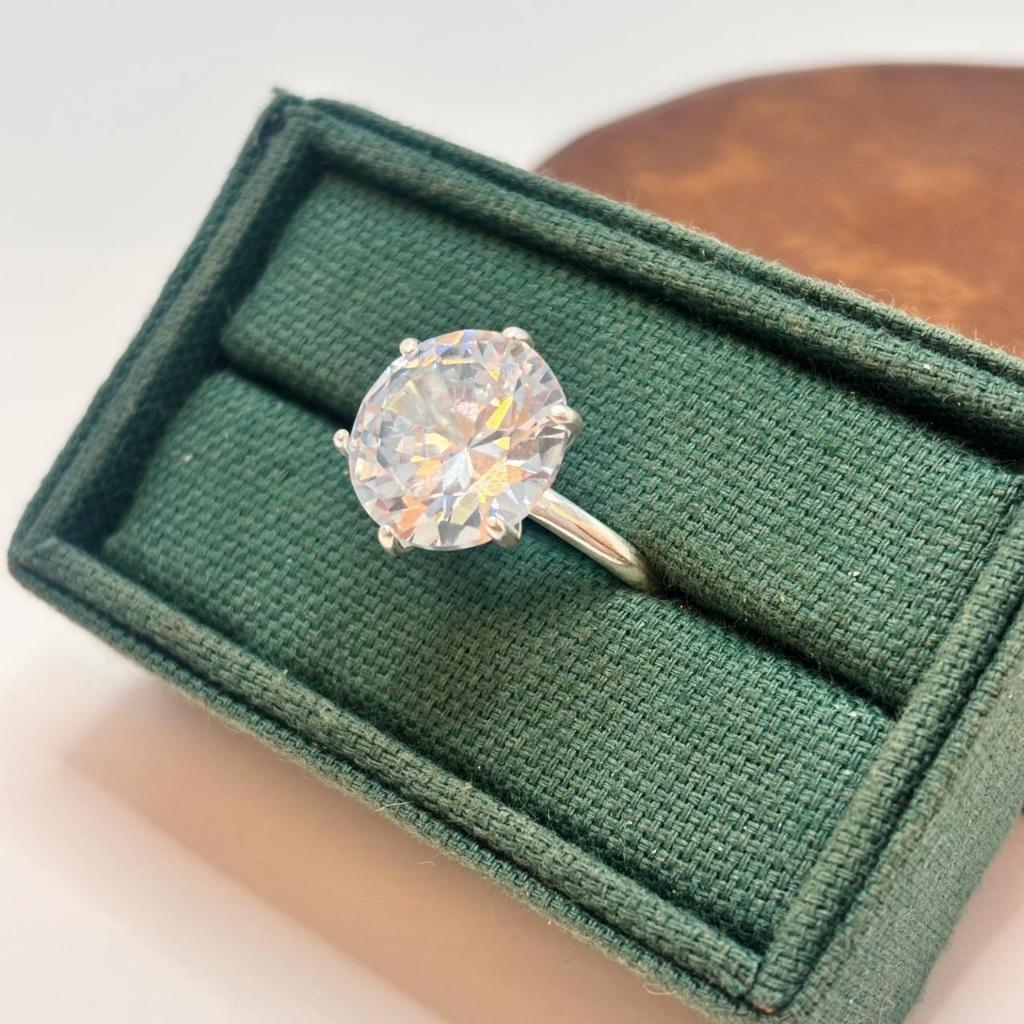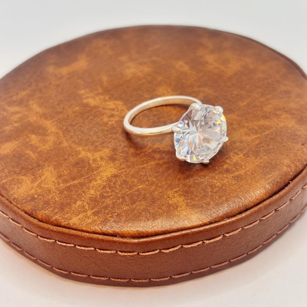 Anel Solitário Pedra Transparente 14mm em Prata 925 Luxo e Brilho