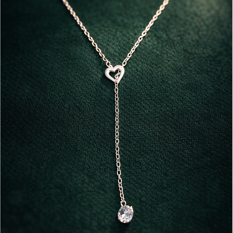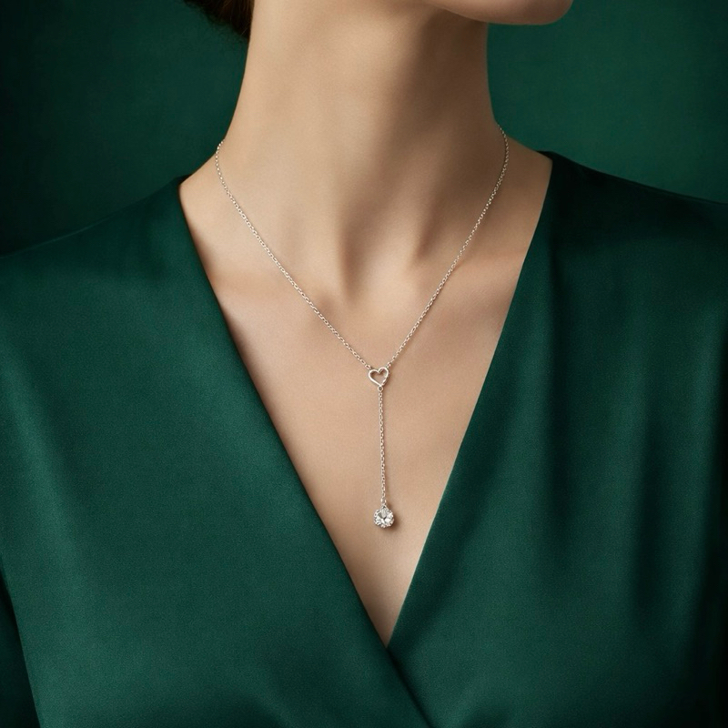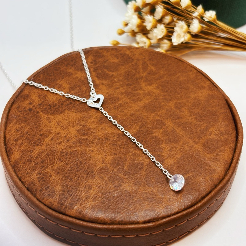 Colar Gravata Pedra Transparente em Prata 925 Delicado e Sofisticado