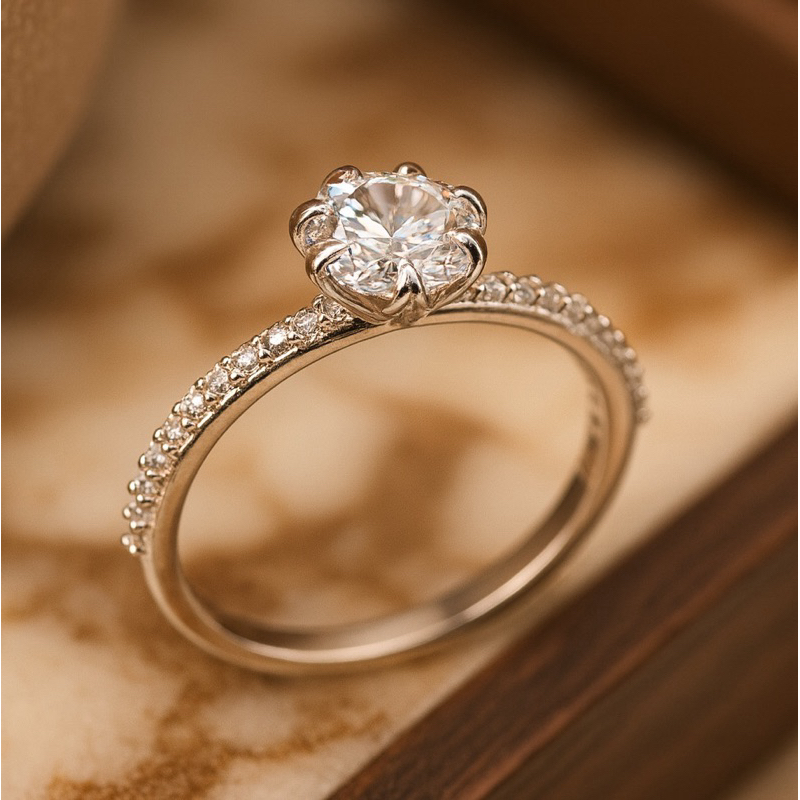 Anel Solitário Pedra Transparente Estilo Flor em Prata 925