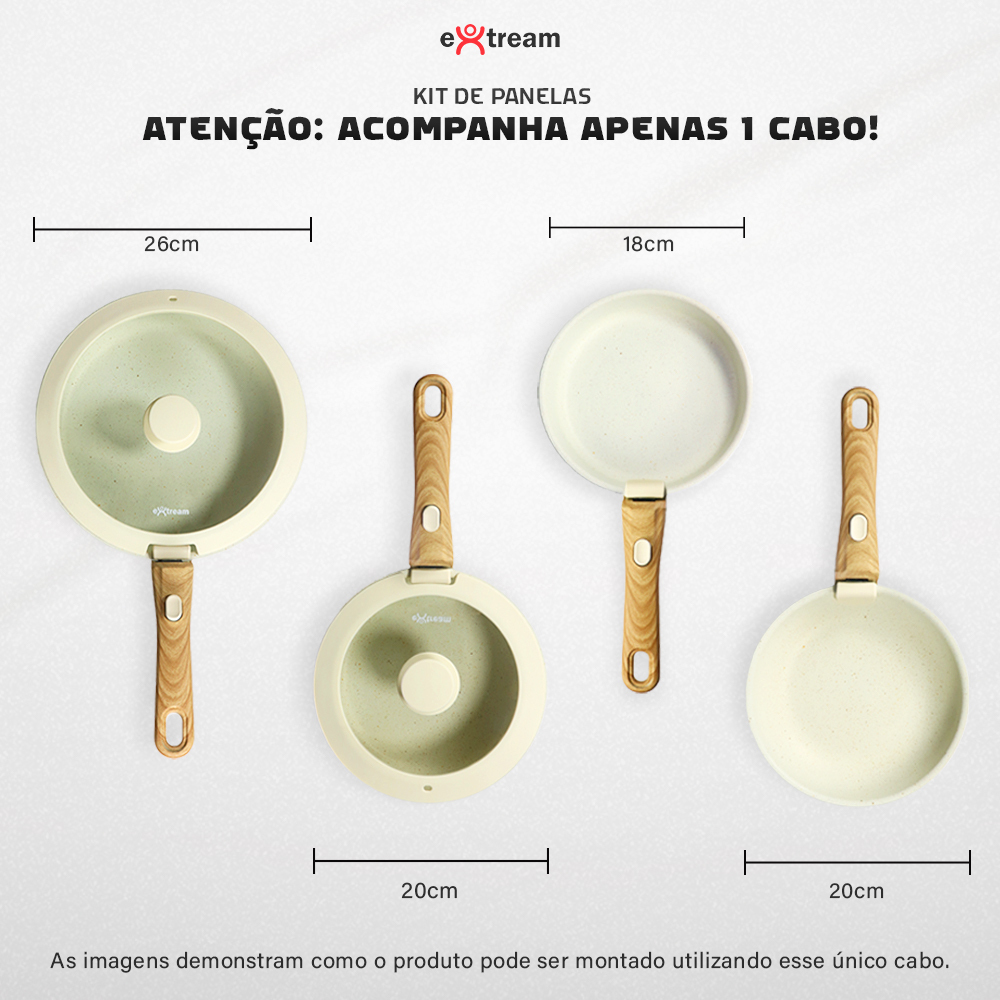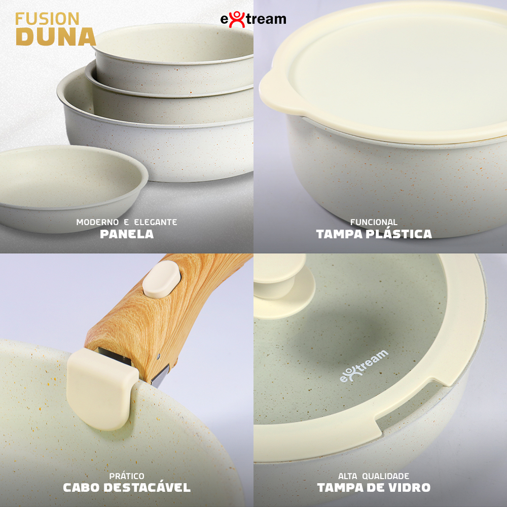 Jogo De Panelas Com Cabo Destacável Nano Ceramic Indução 12 Peças Extream - Fusion Duna