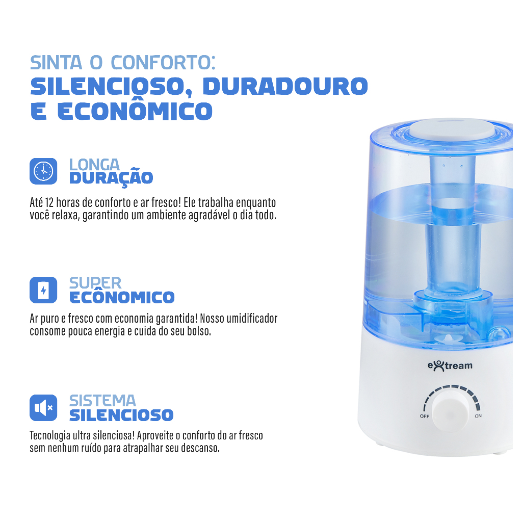 Umidificador de Ar Ultrassônico 2L OYA Extream Good Breathing - Silencioso e Compacto Bivolt
