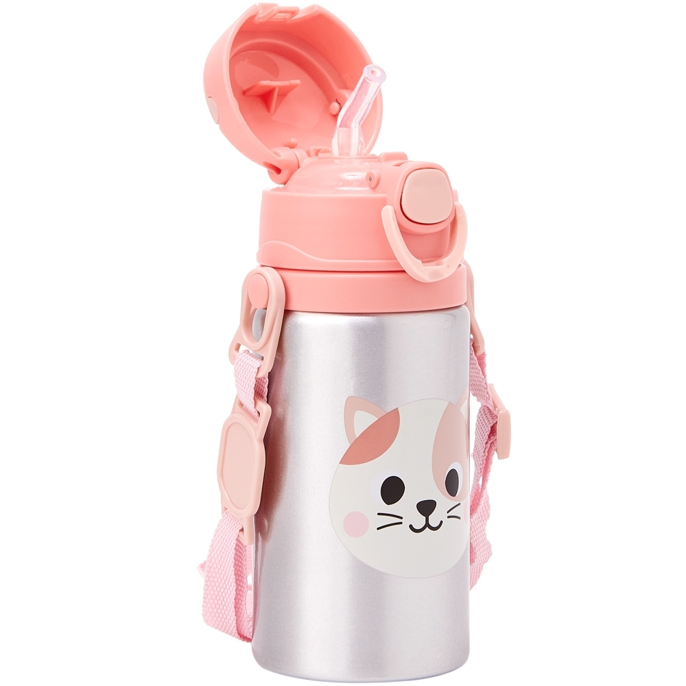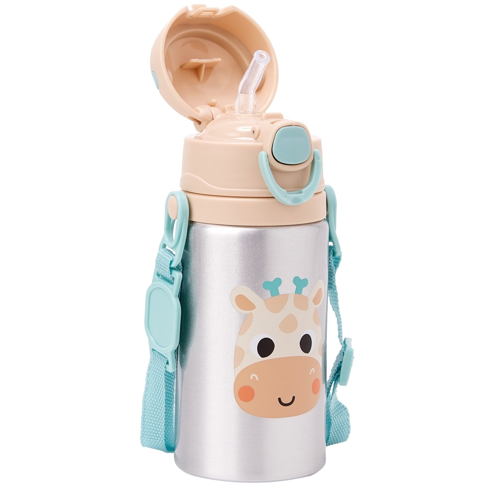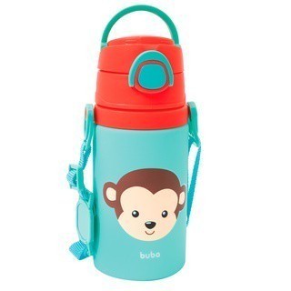 Garrafinha De Alumínio Com Canudo 100% Silicone Animal Fun 450 ml Da Buba