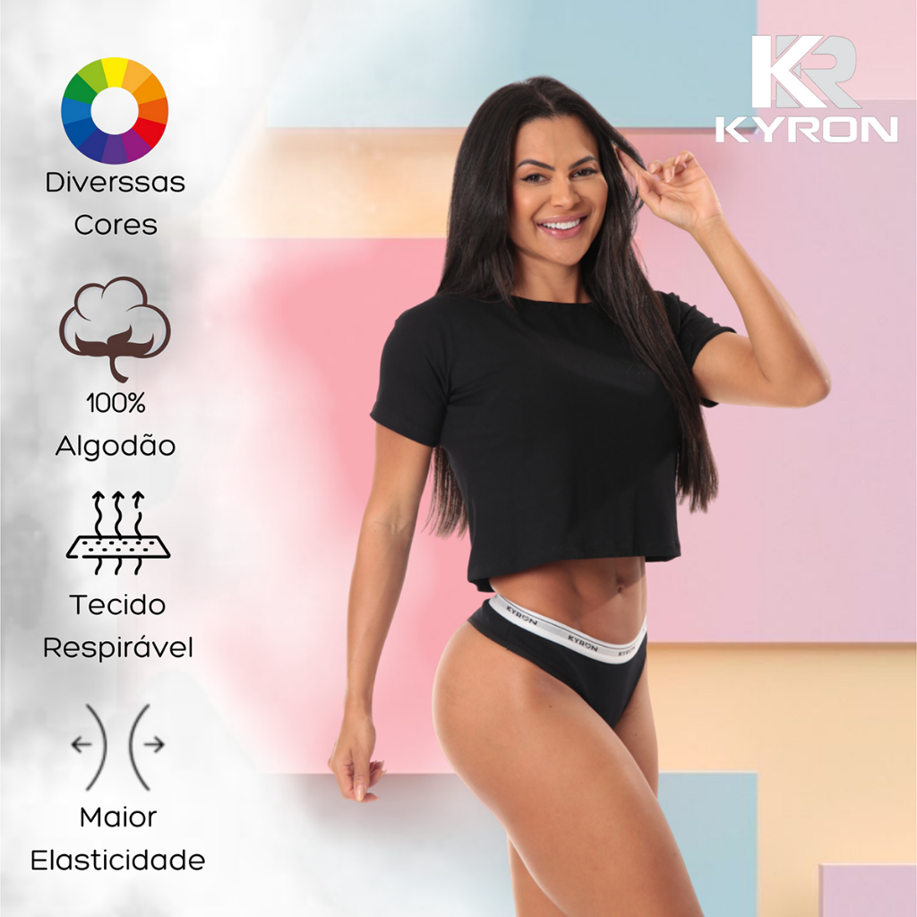 Kit 10 Calcinhas Fio Dental Cós Alto Calcinha De Algodão Lingerie Kyron