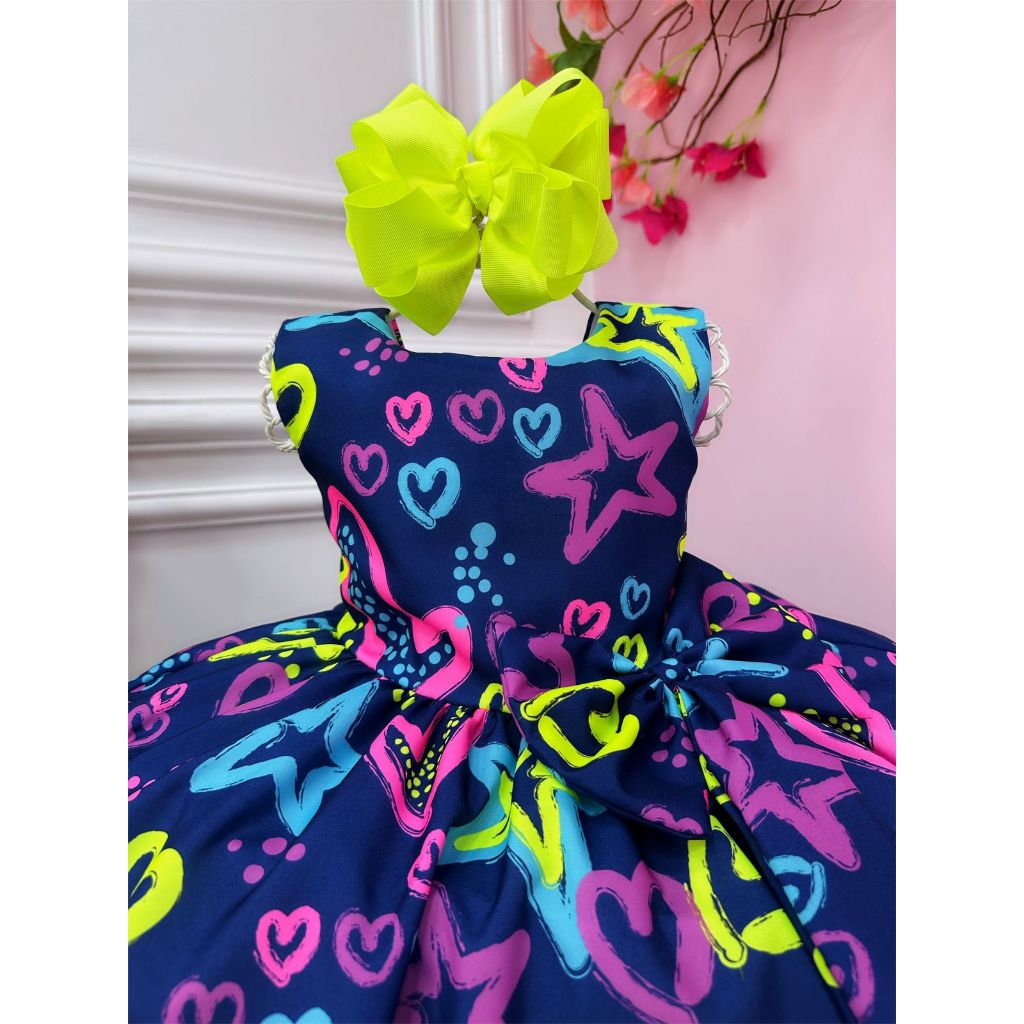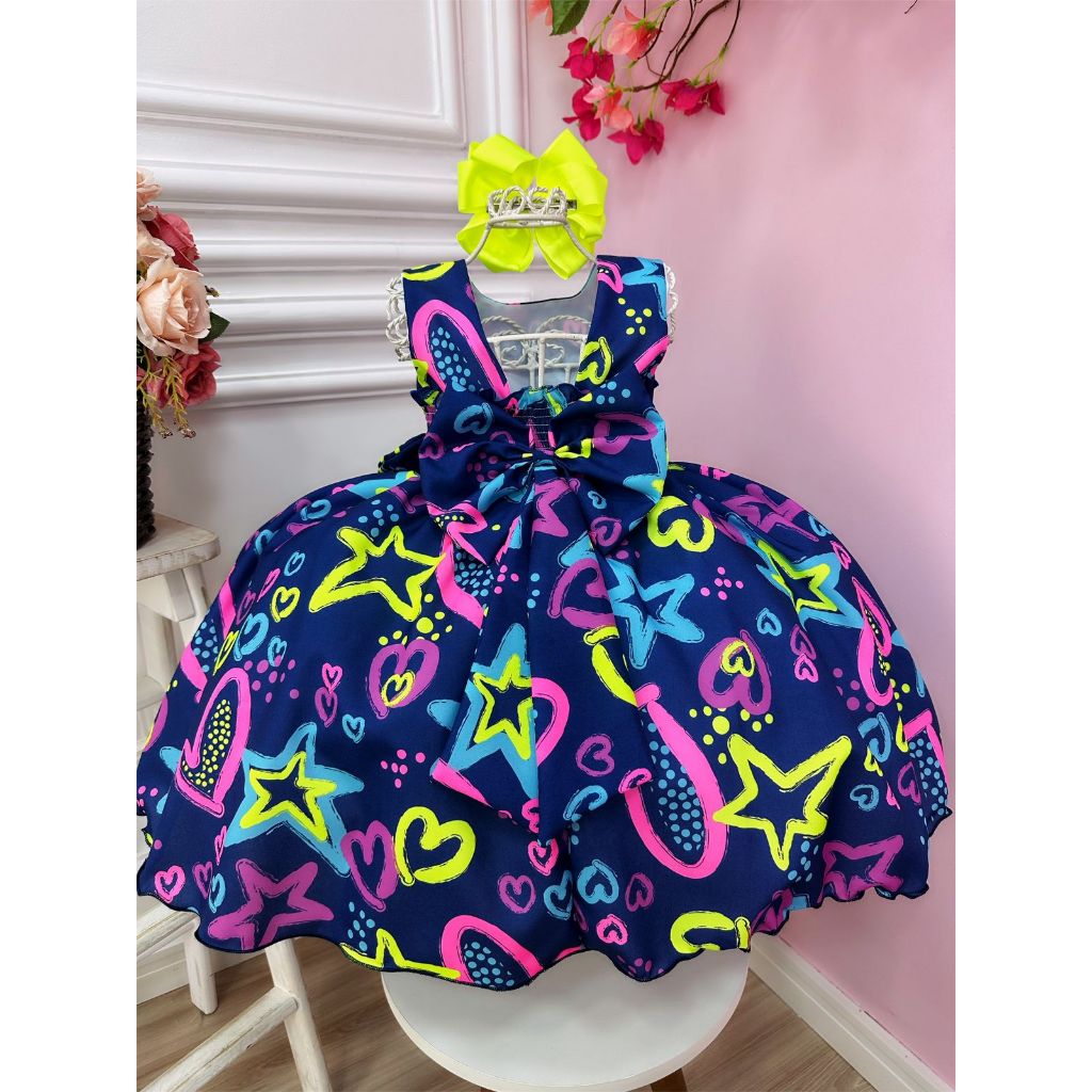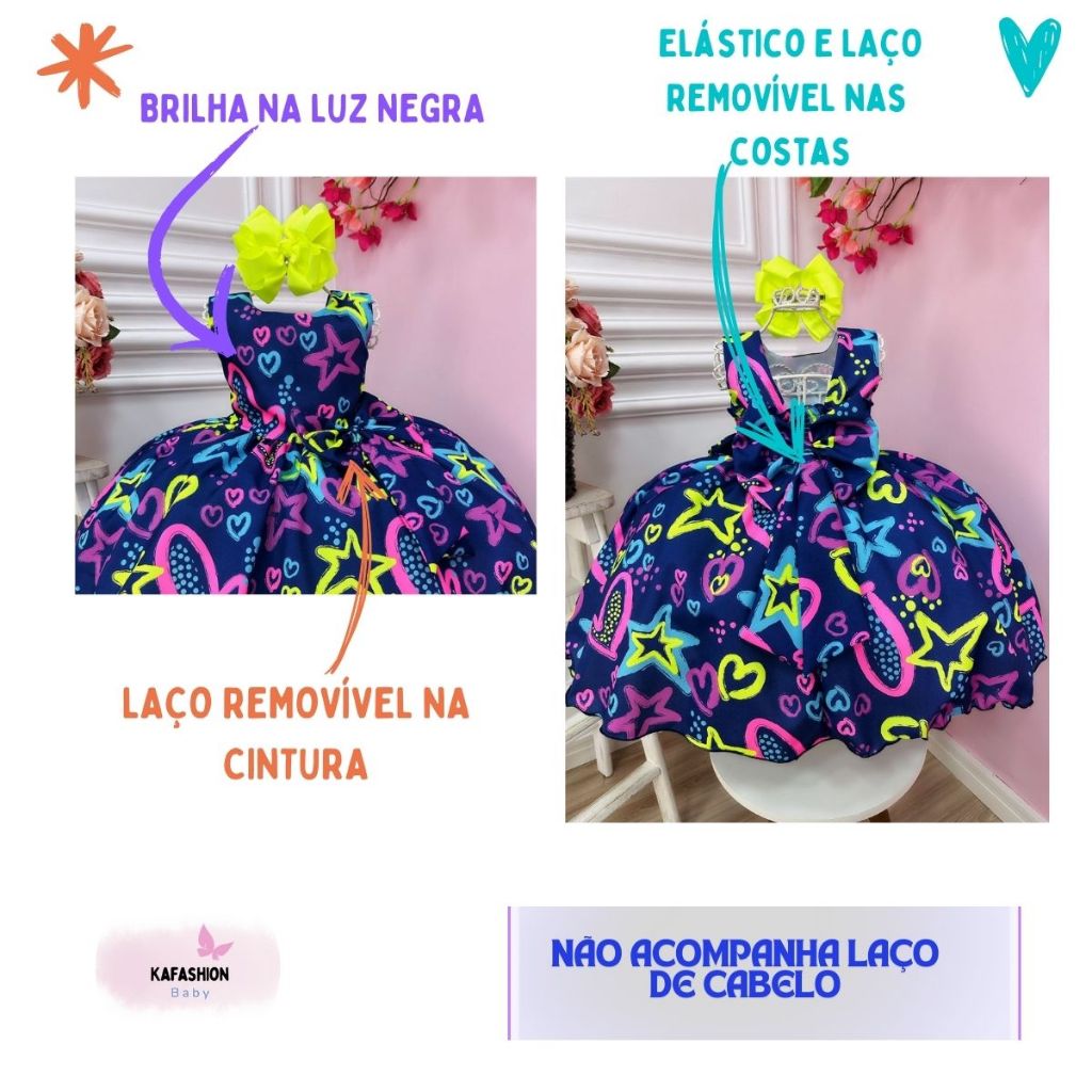 Vestido Tema Festa Neon Infantil Brilha Na Luz Negra Azul Balada Praia Carnaval Pool Party 4 ao 16