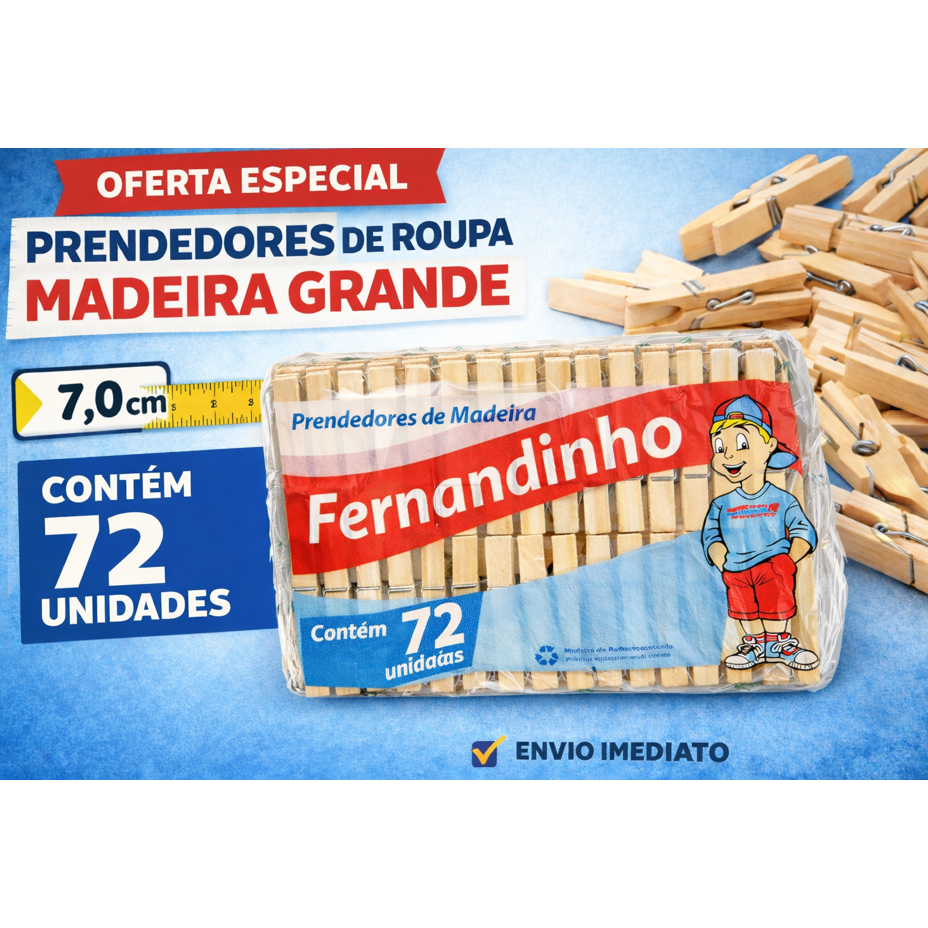 Prendedor Madeira 7cm Grande Kit 144 Unidades ou 72 Unidades