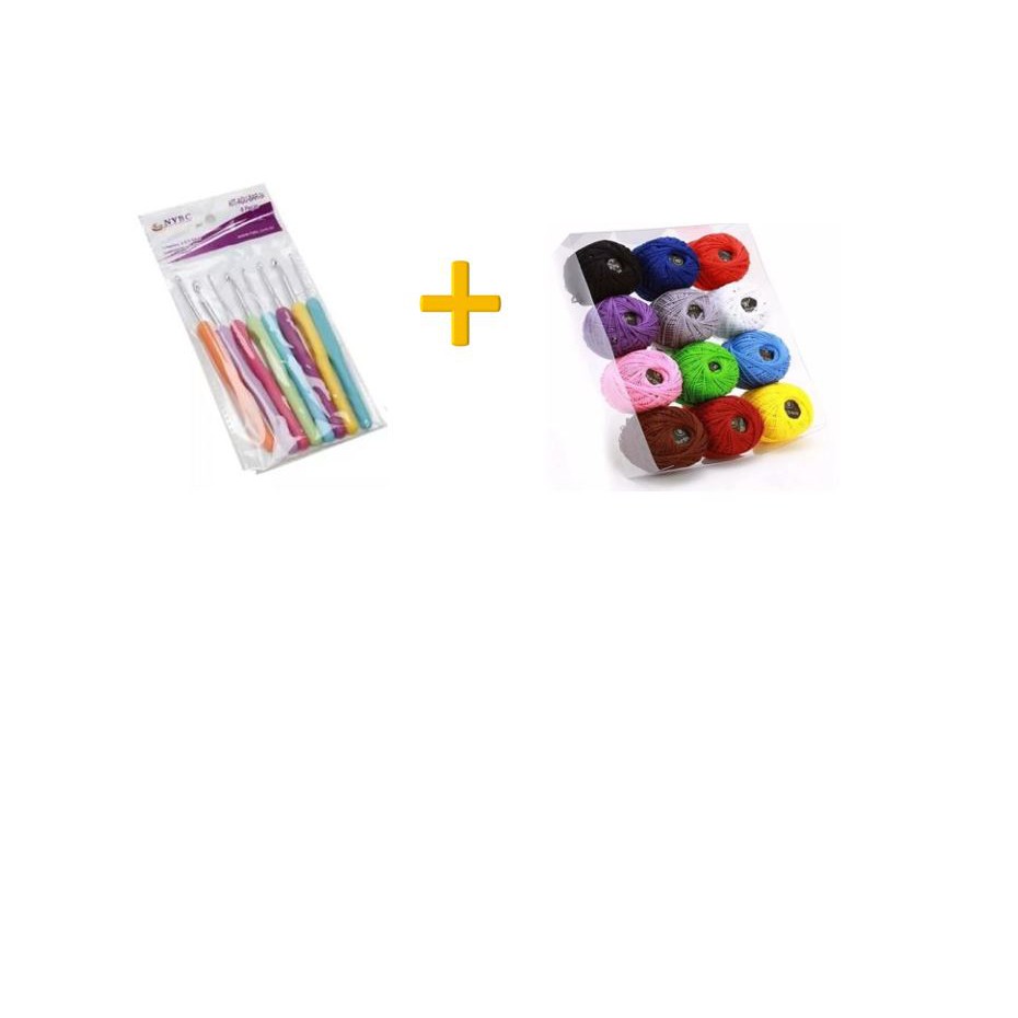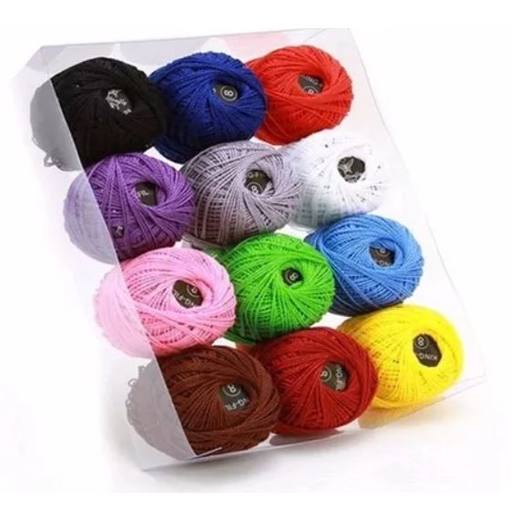Kit com 12 linhas de crochê + kit 8 agulhas para crochê