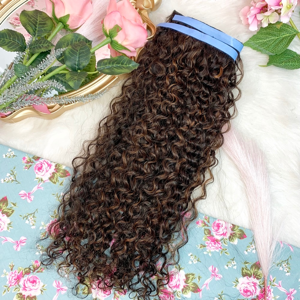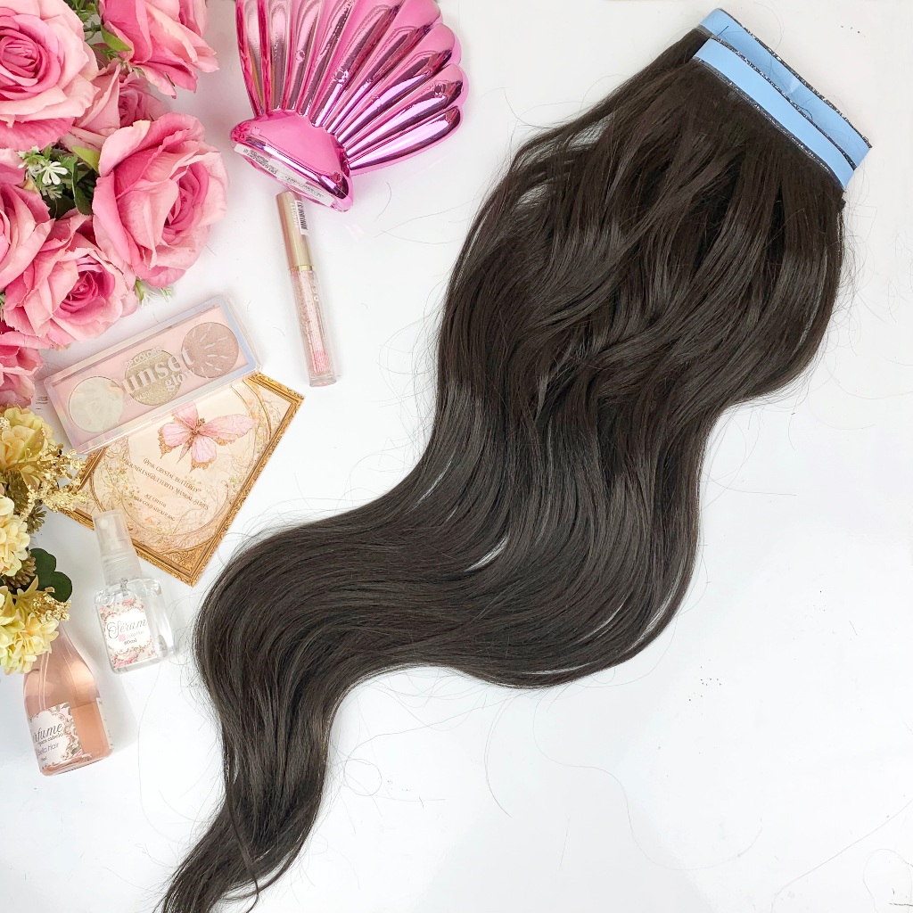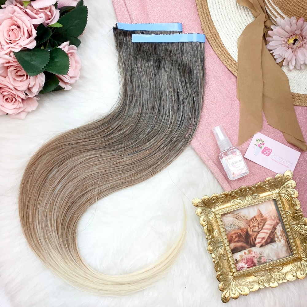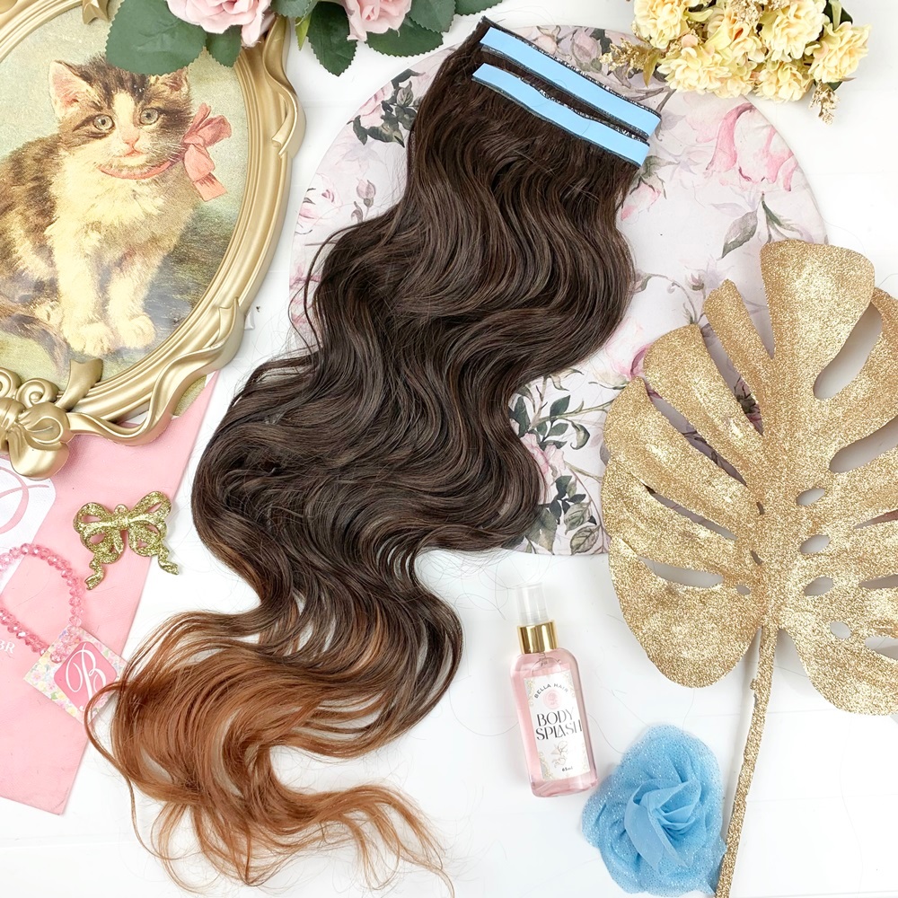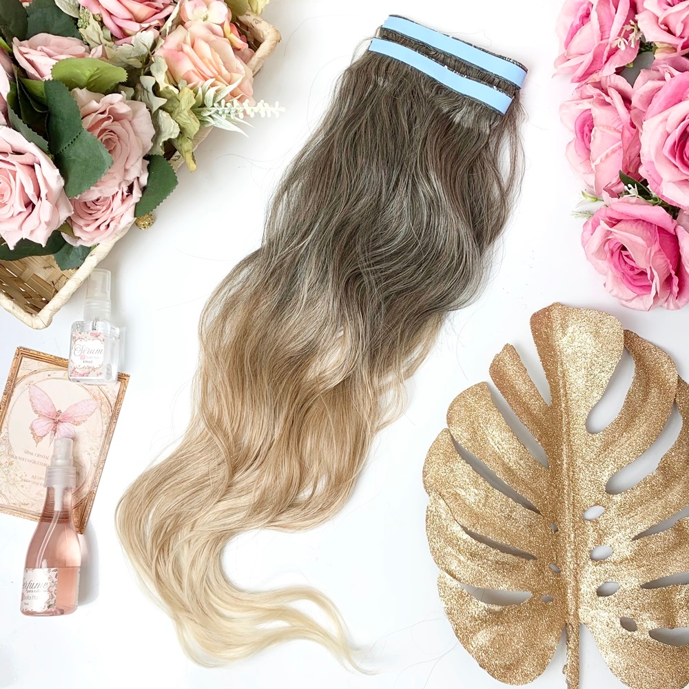 MEGA HAIR ADESIVO CABELO FIBRA PREMIUM LISO ONDULADO CACHEADO 2 TIRAS - CORES E TAMANHOS