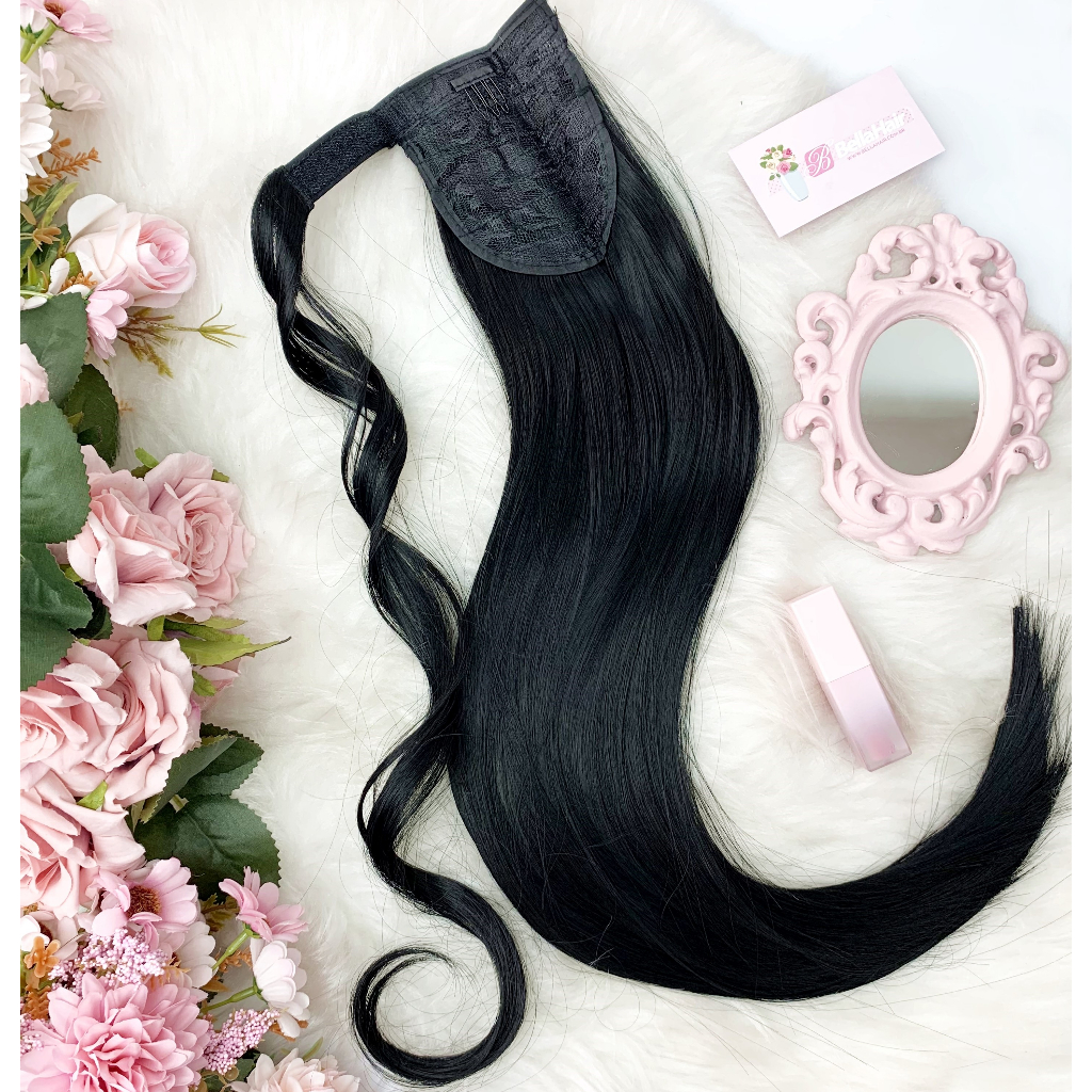 APLIQUE RABO DE CAVALO BIO FIBRA LISO PRETO 65 CM - COM VELCRO