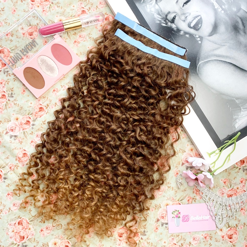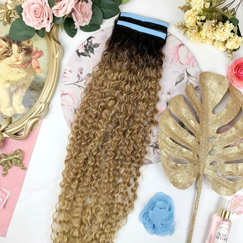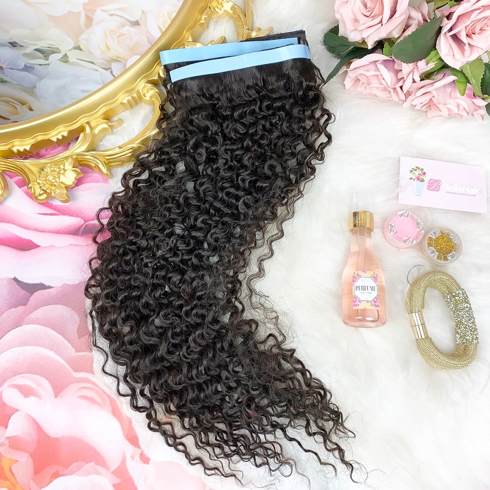 MEGA HAIR ADESIVO CABELO FIBRA PREMIUM CACHEADO 2 TIRAS - CORES E TAMANHOS
