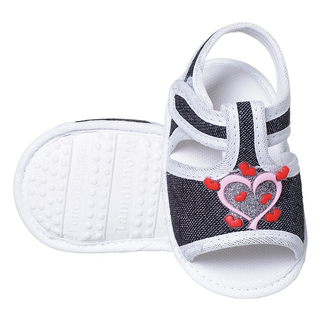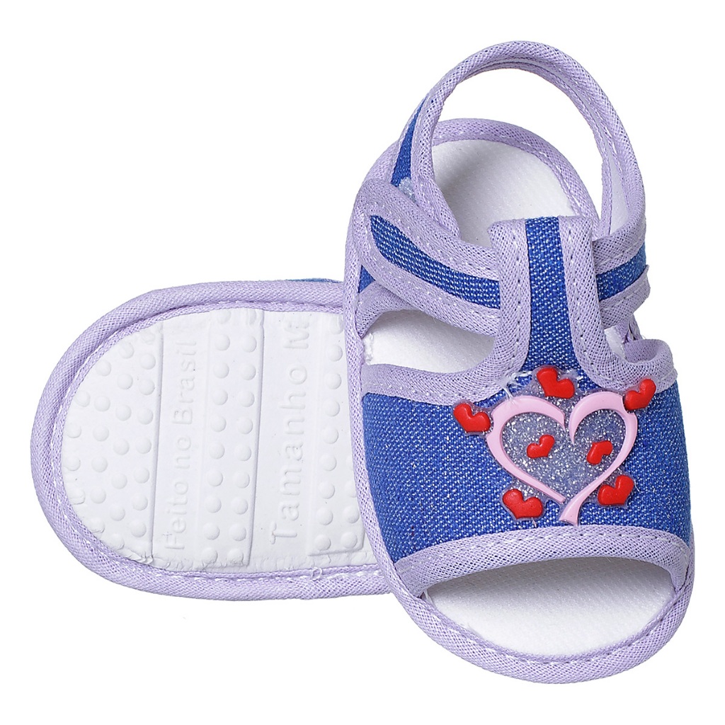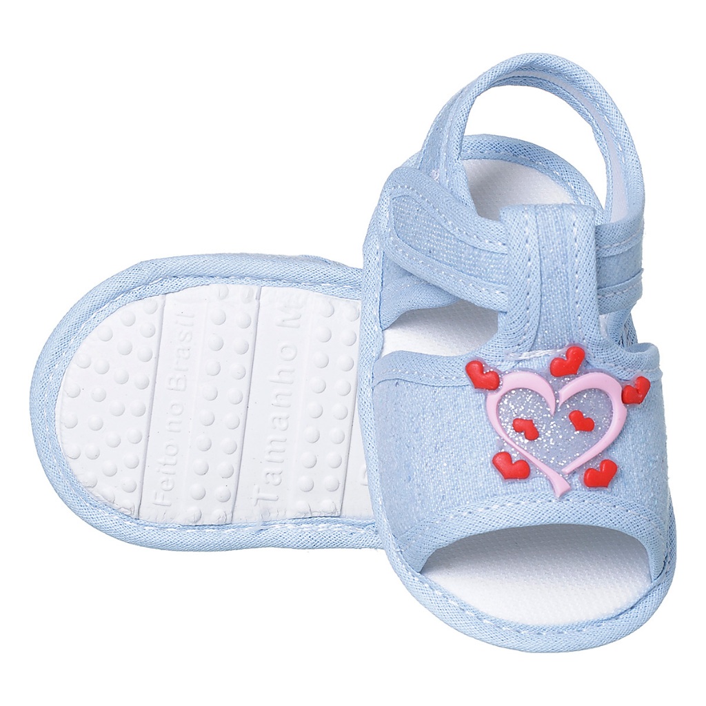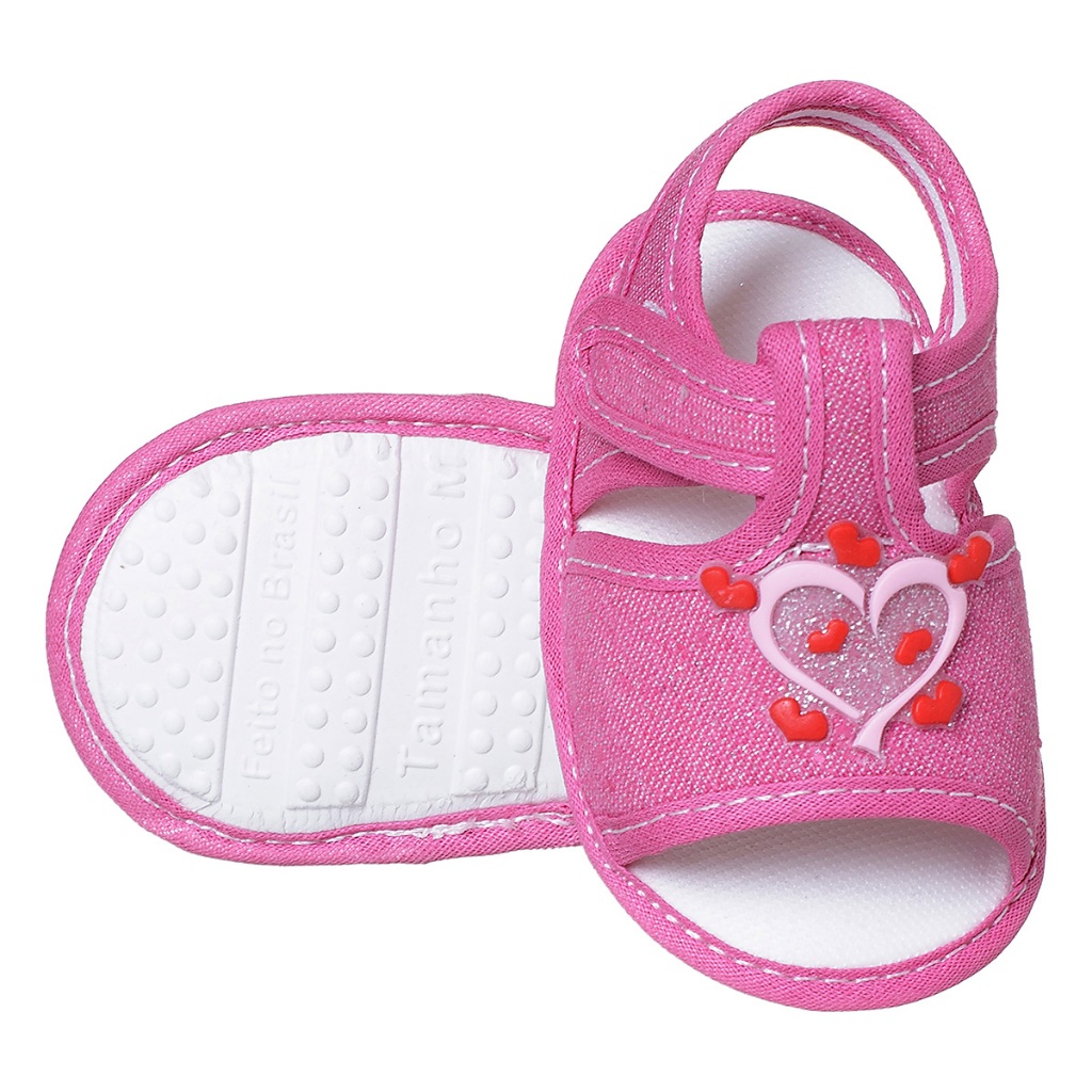 Sandália Bebê Menina Coração Brilho Infantil Baby Promoção Delicada Confortável 0 a 11 Meses Papete